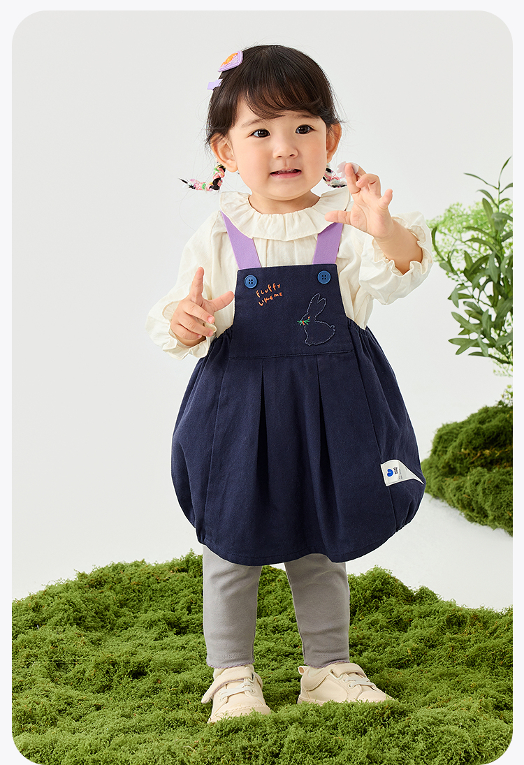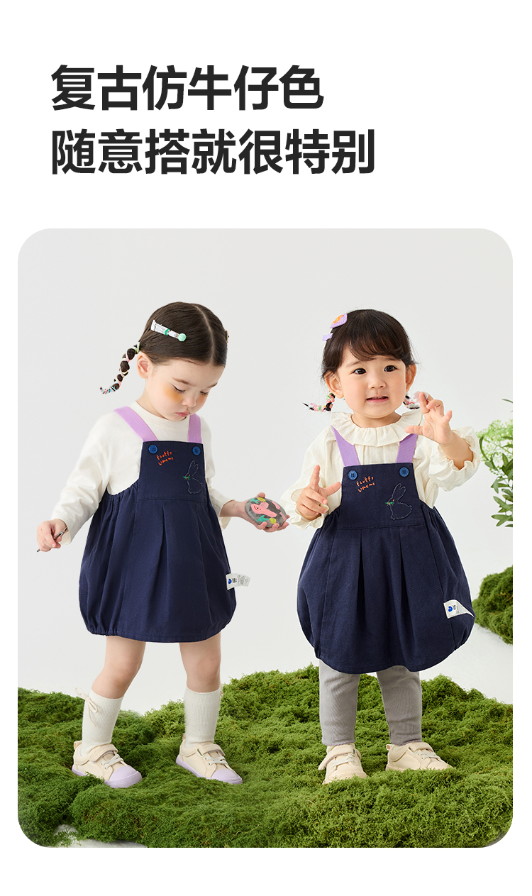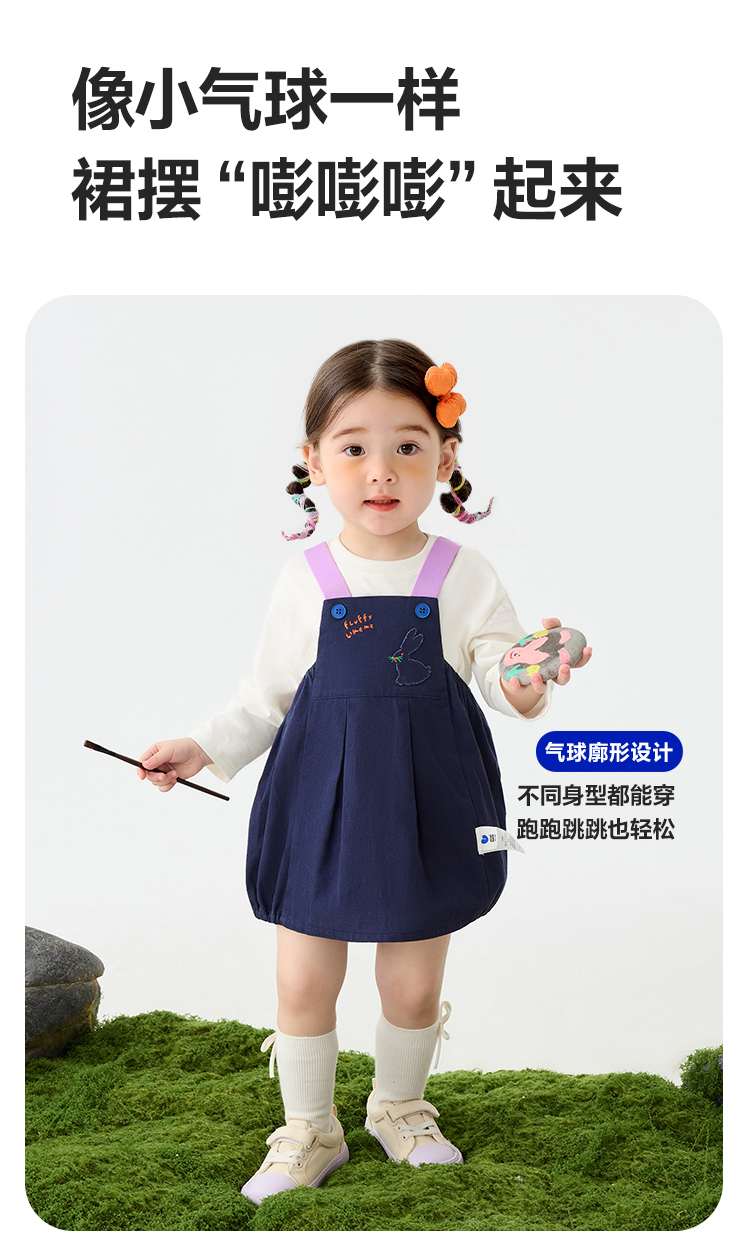 迷你巴拉背带裙女童宝宝全棉宽松刺绣甜美仿牛仔气球2025春