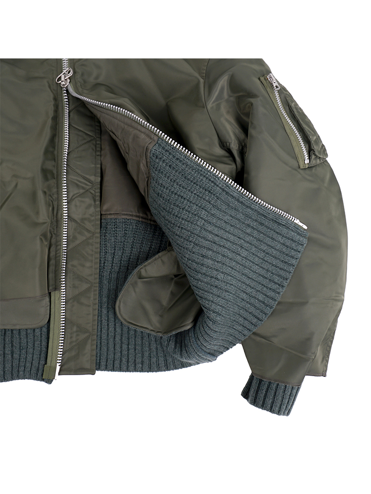 YOKE Connected Rib Knit Flight 不规则拼接军事风飞行夹克