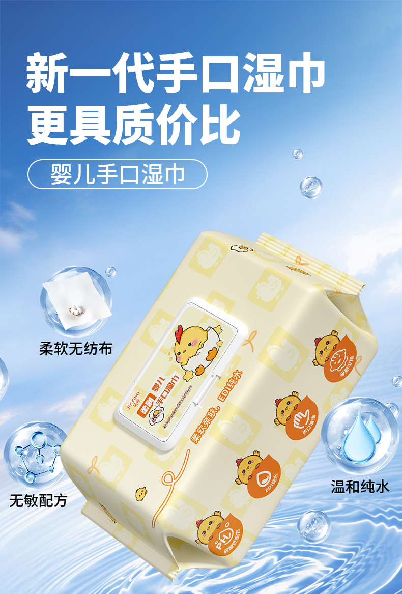 平价优选:纯水呵手口湿巾加厚大包清洁湿纸巾80抽*5包