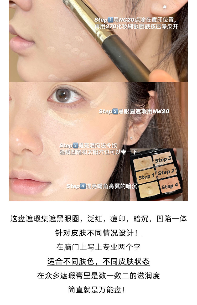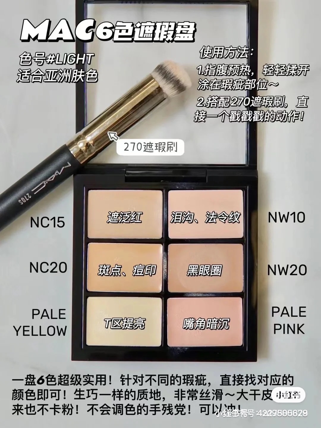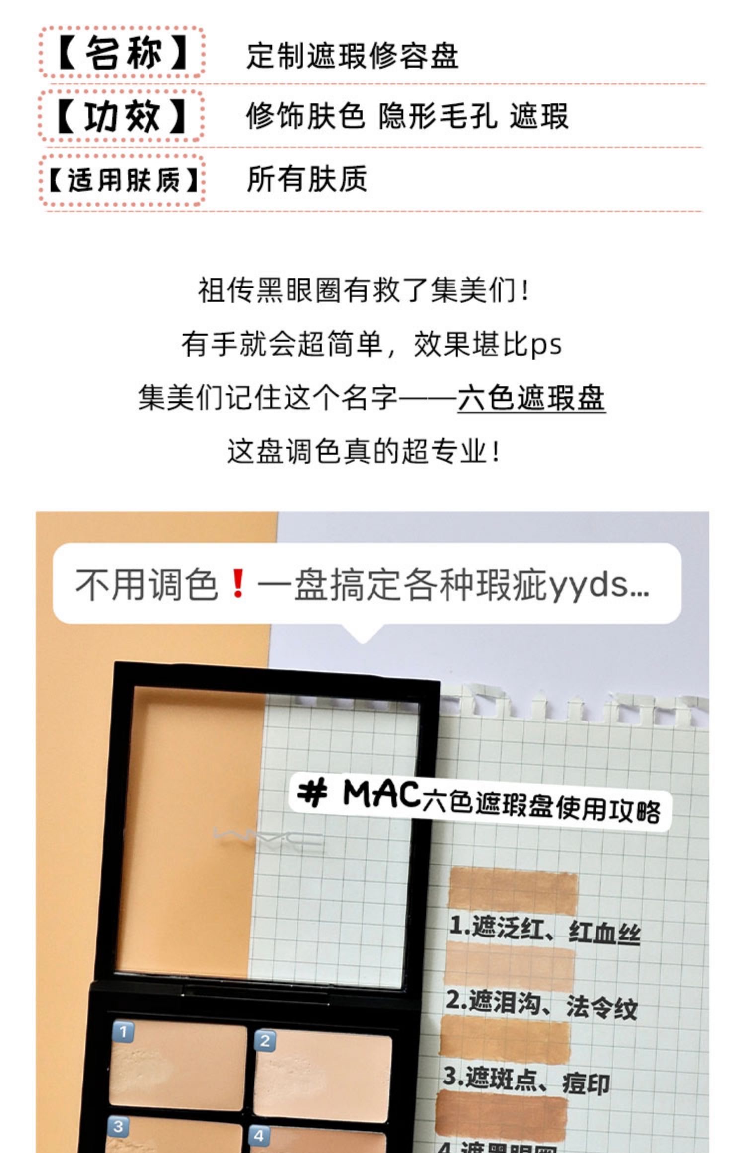 MAC魅可定制六色遮瑕盘多功能彩妆遮黑眼圈痘印泪沟隐瑕疵