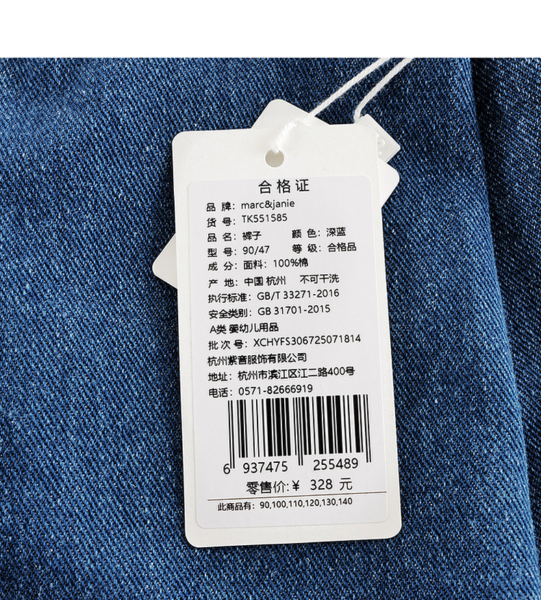 马克珍妮女童纯棉牛仔百搭萝卜裤2025年秋装新款551585