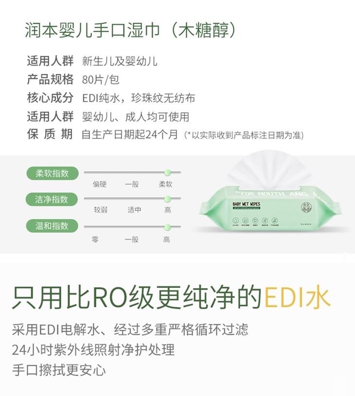 【润本婴儿手口湿巾】(木糖醇)常规款产地直发