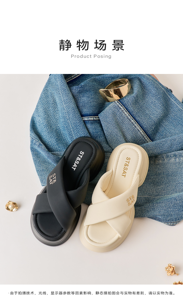 星期六26夏新款时尚简约金属夹趾平底凉拖SSE2110CLG