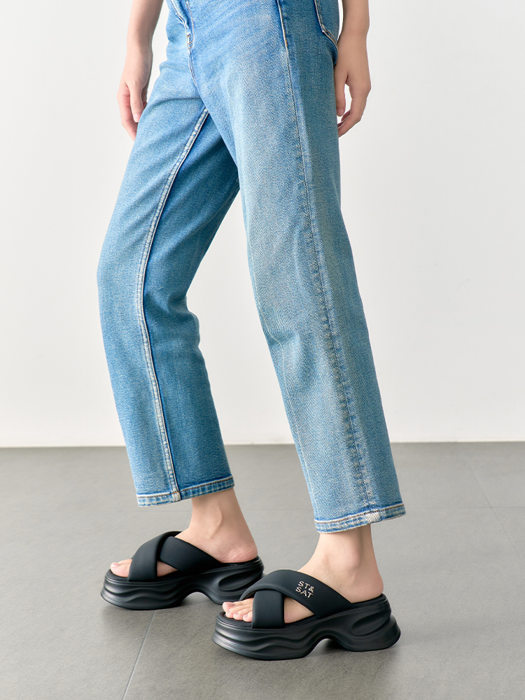 星期六铆钉细带露趾粗跟拖鞋SSC2110318