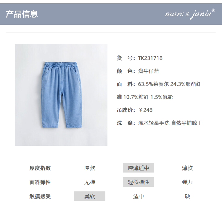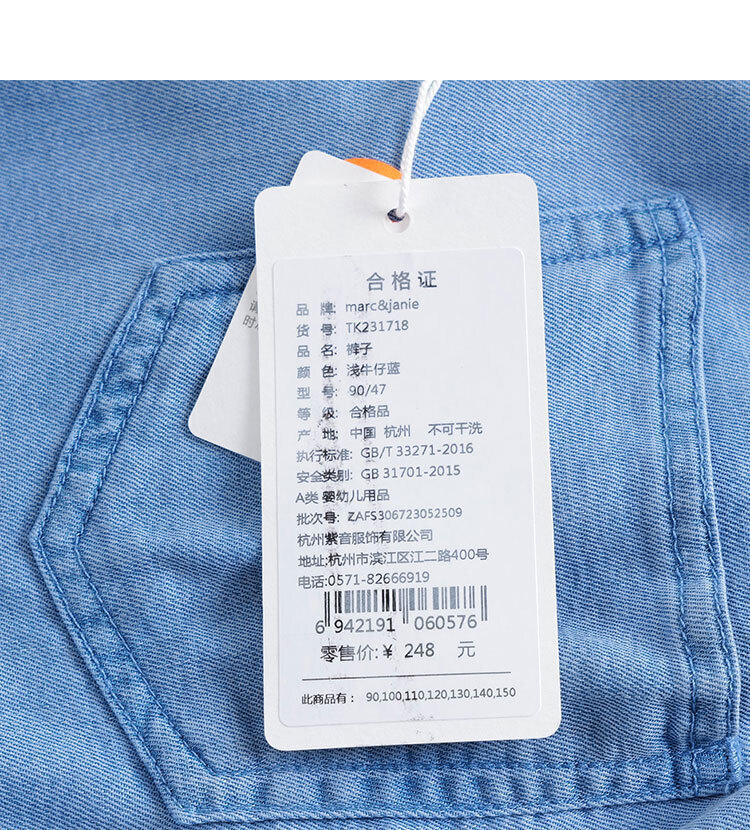 马克珍妮夏装新款 男童微弹透气薄款牛仔裤 儿童裤子231718