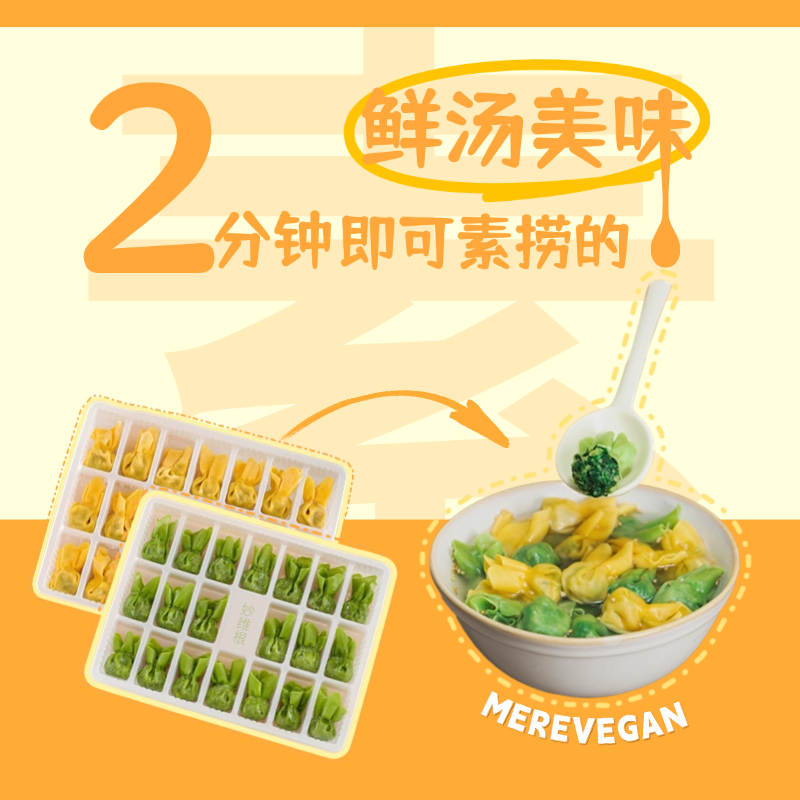 鲜蔬菜汁调色,9克一小只,2分钟快熟,馅料饱满蔬菜丰富,配料干净,颜值高,味道好,又方便。