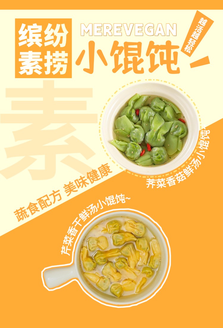 缤纷素捞小馄饨 (荠菜香菇鲜汤小馄饨&芹菜香干鲜汤小馄饨)