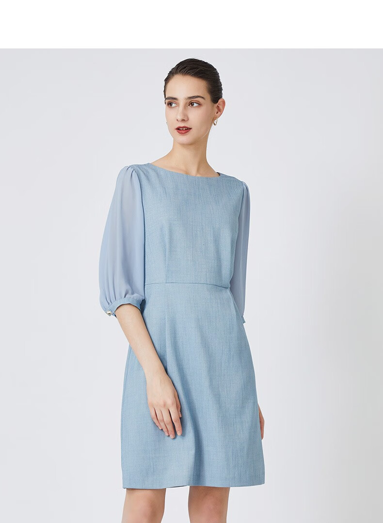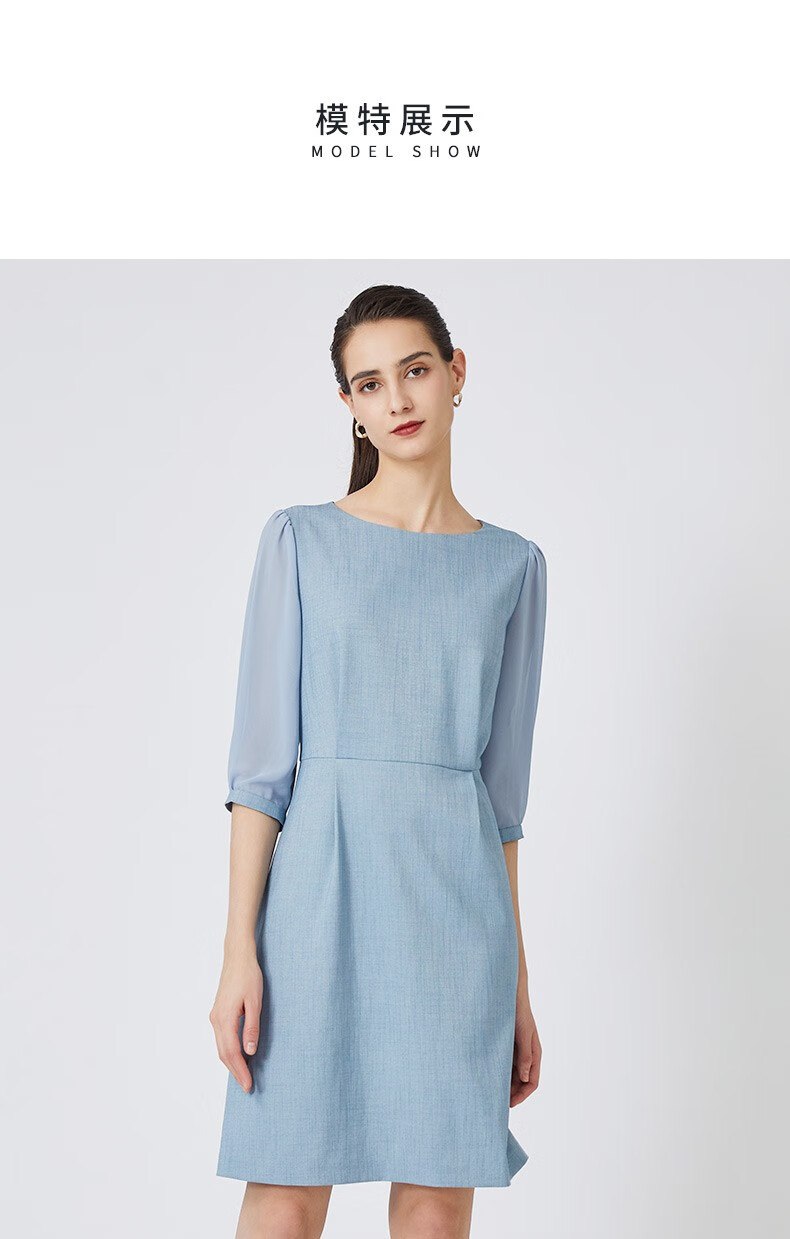 皮尔卡丹女装夏季新款简约通勤拼接修身连衣裙P1279D1111B3