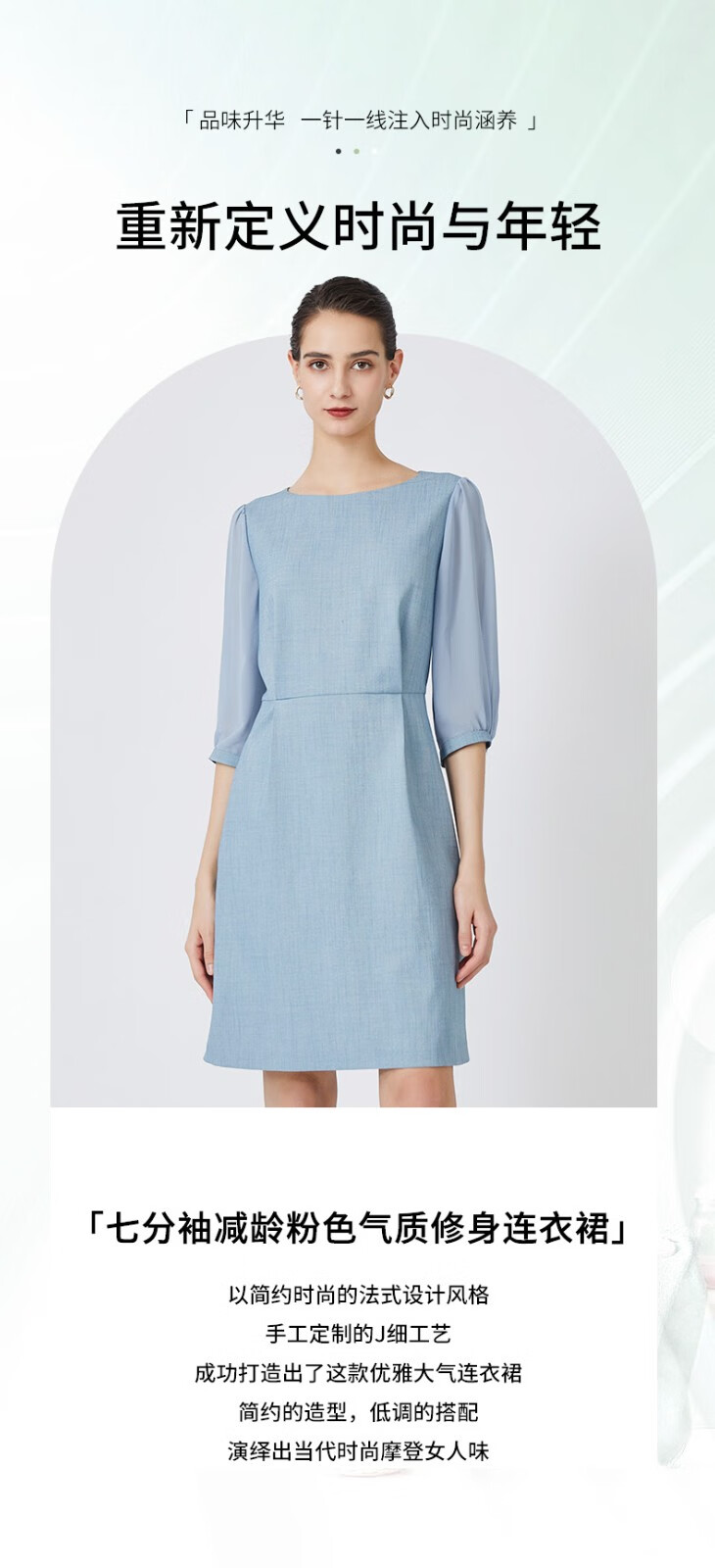 成熟、稳重、高贵典雅、大方得体 融合东方文化的含蓄和法国的浪漫 将创意的艺术性与消费需求相结合 为自信女性塑造高品质场合服装