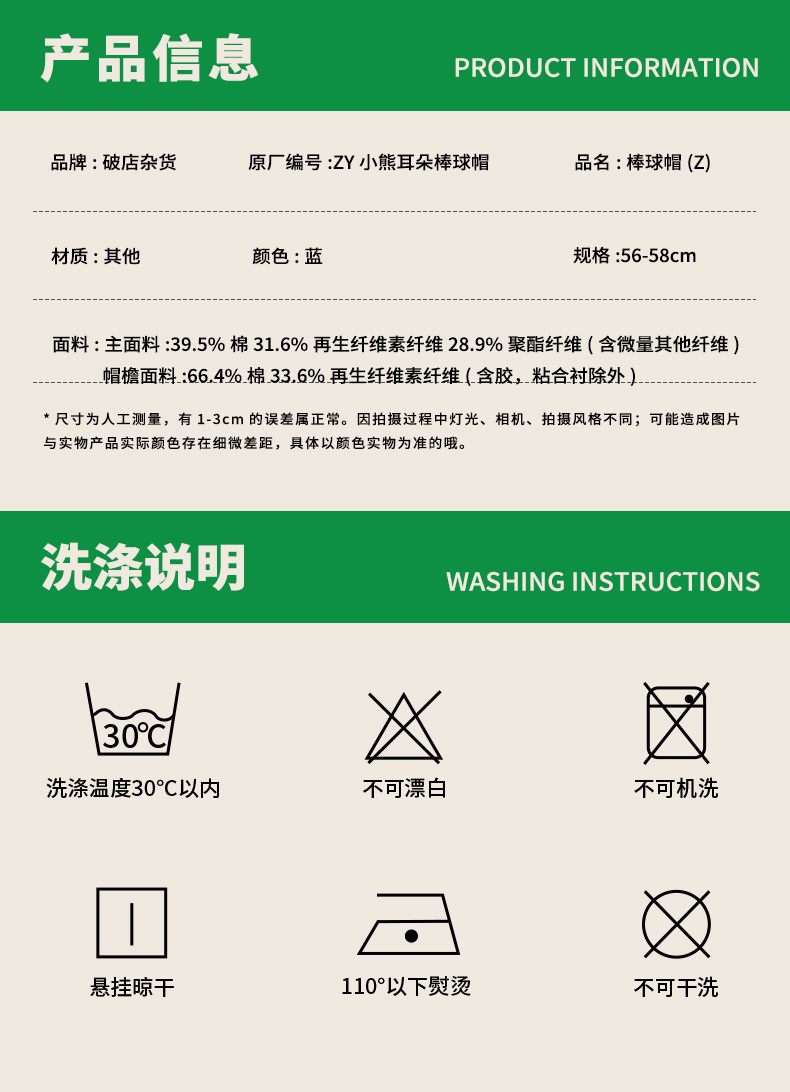 ZY小熊耳朵棒球帽-纪念日百货门店同款169293726