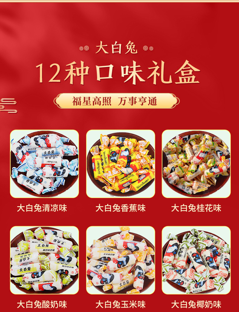 【好礼相赠❗大白兔奶糖礼盒】甄选品质原料制作,多种口味一次满足,缤纷口味老少皆宜,糖果大礼包500g,糖果礼盒年货零食品L