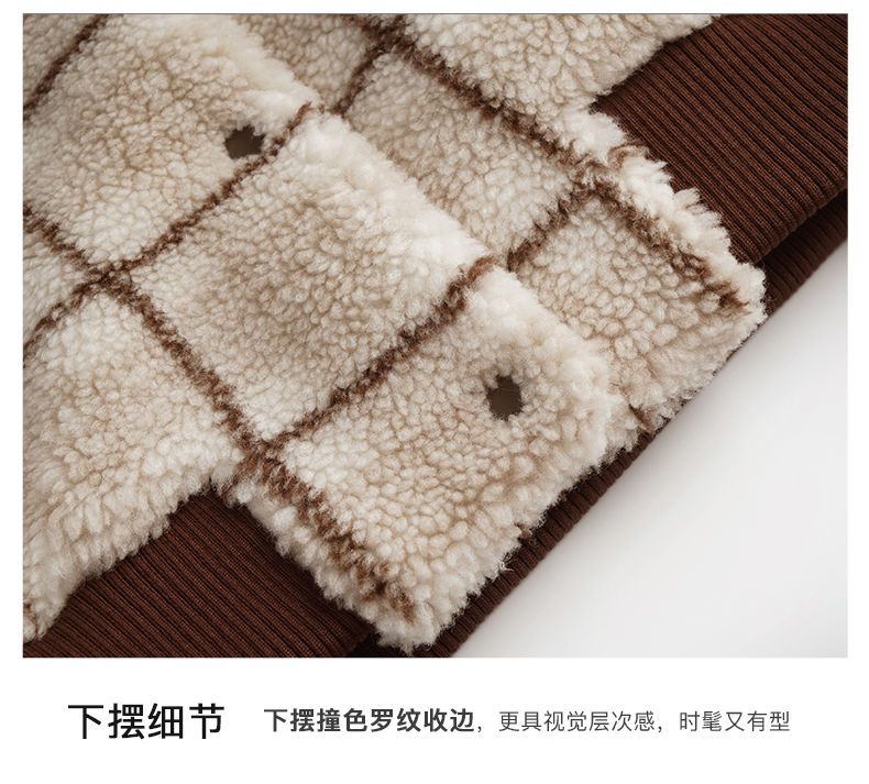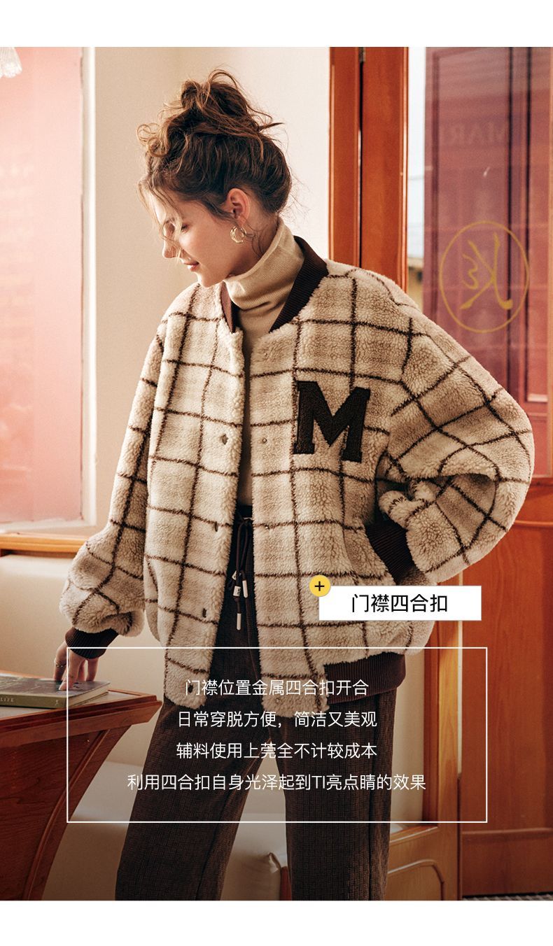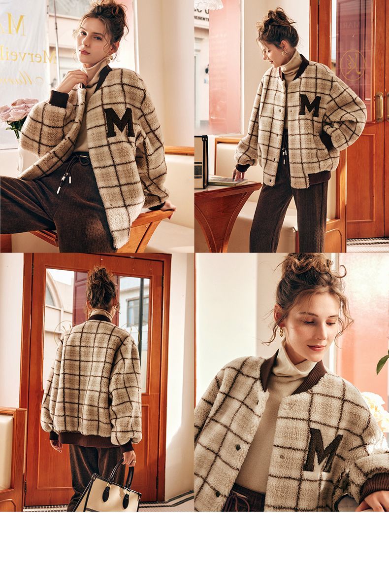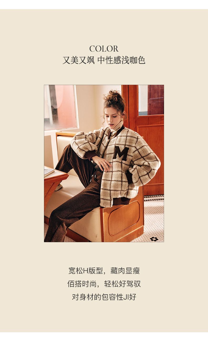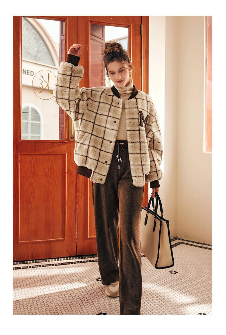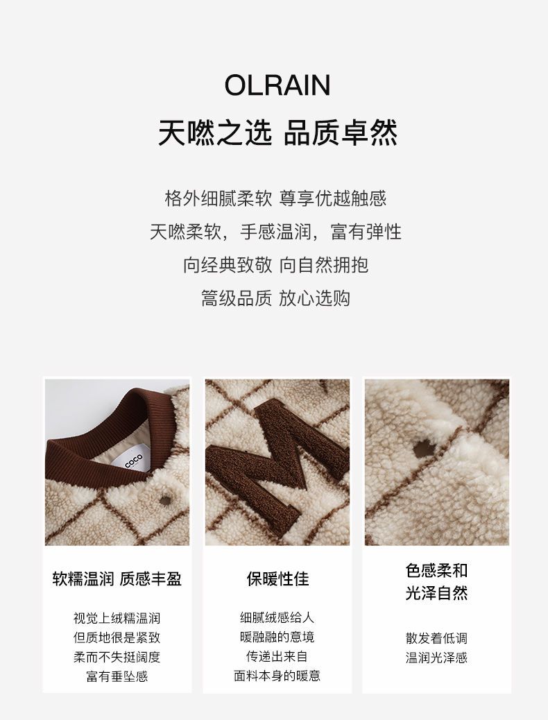 OLrain欧芮儿法式格子毛呢外套女秋冬2025年新款宽松加厚毛绒皮草