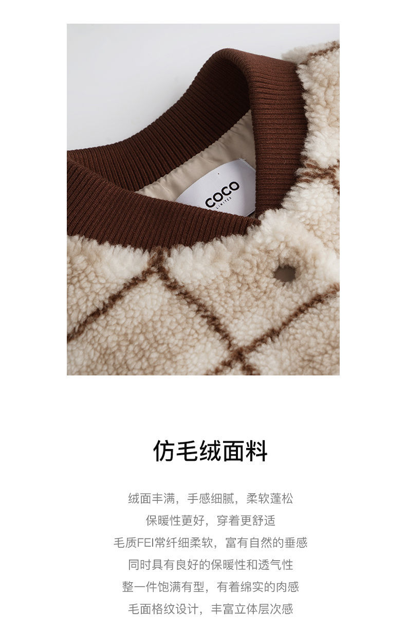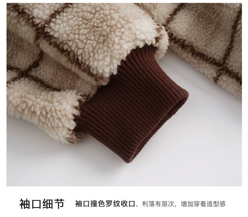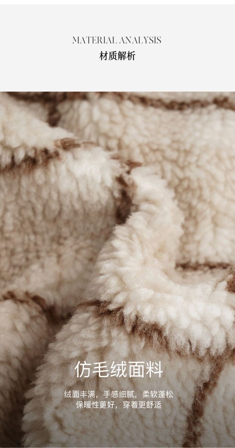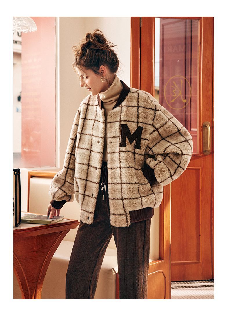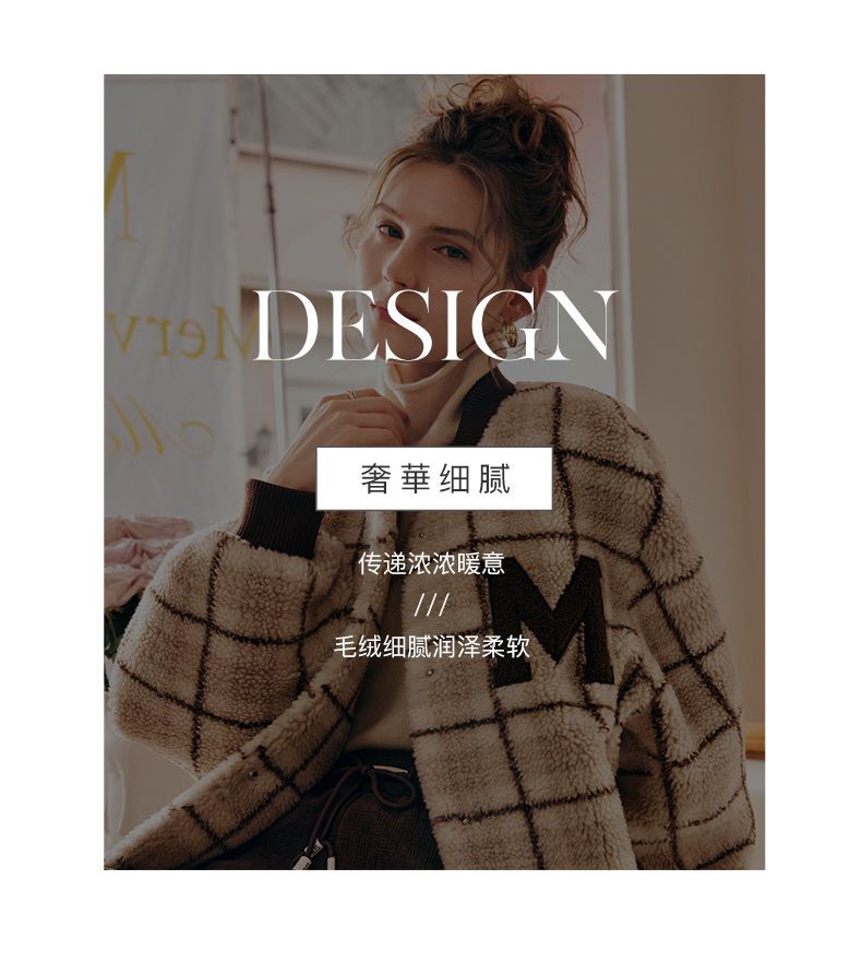 OLrain欧芮儿法式格子毛呢外套女秋冬2025年新款宽松加厚毛绒皮草