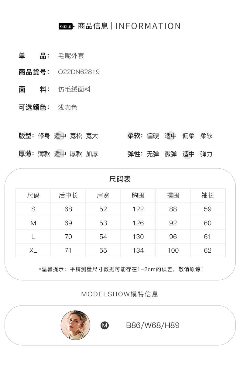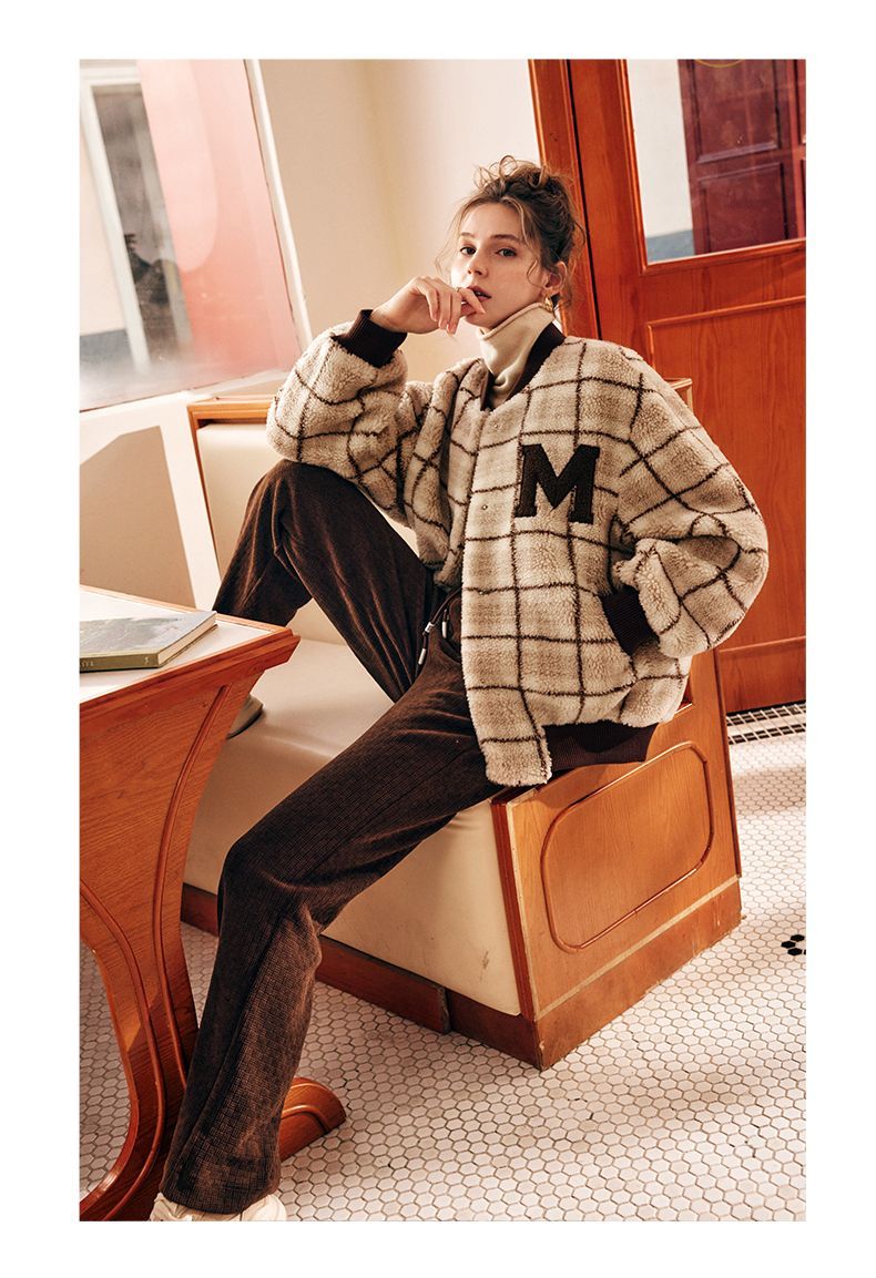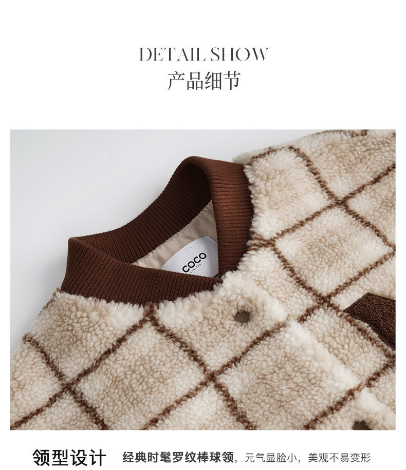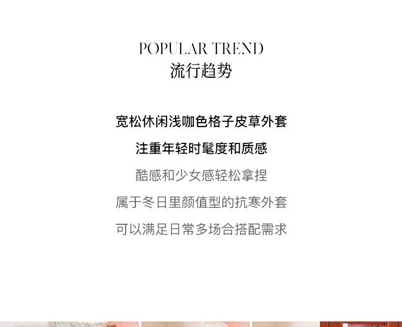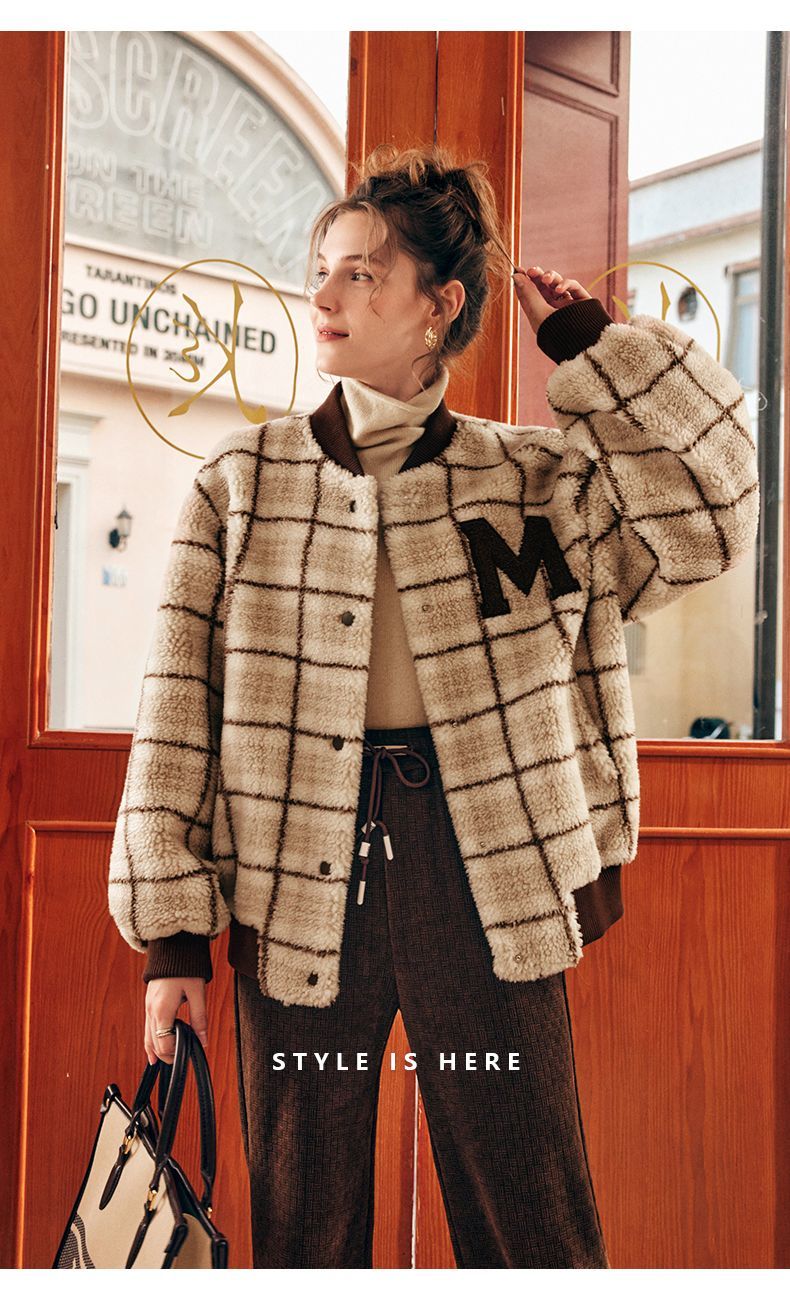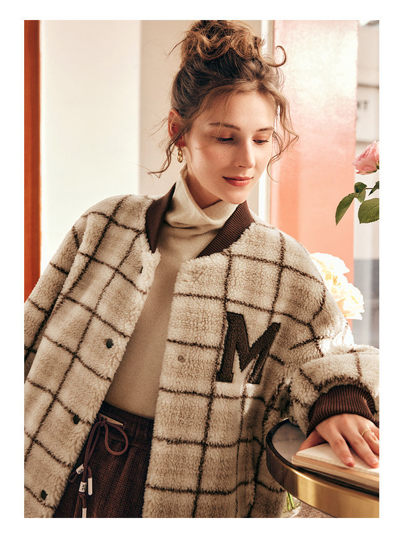 OLrain欧芮儿法式格子毛呢外套女秋冬2025年新款宽松加厚毛绒皮草