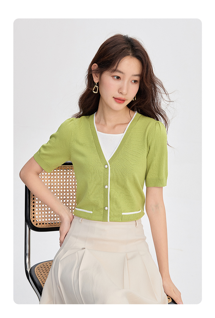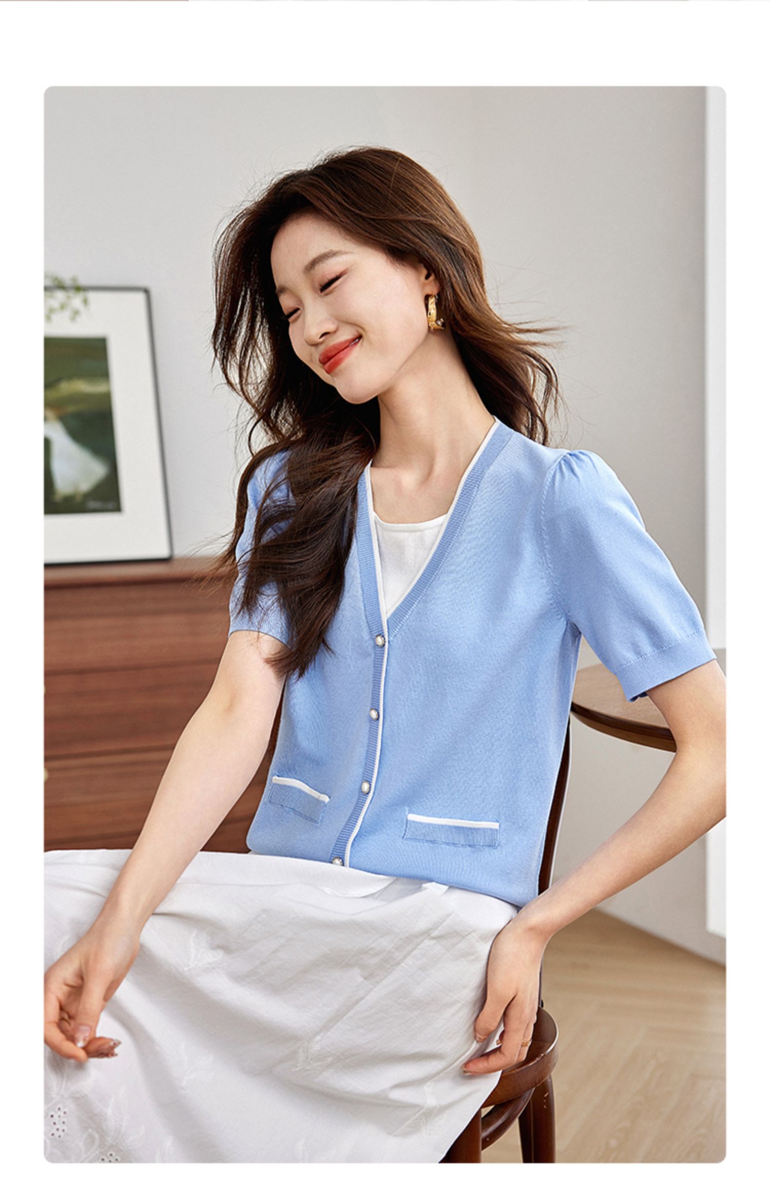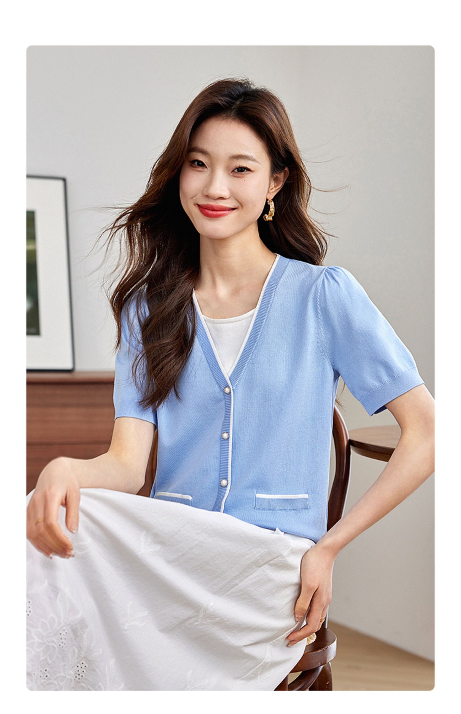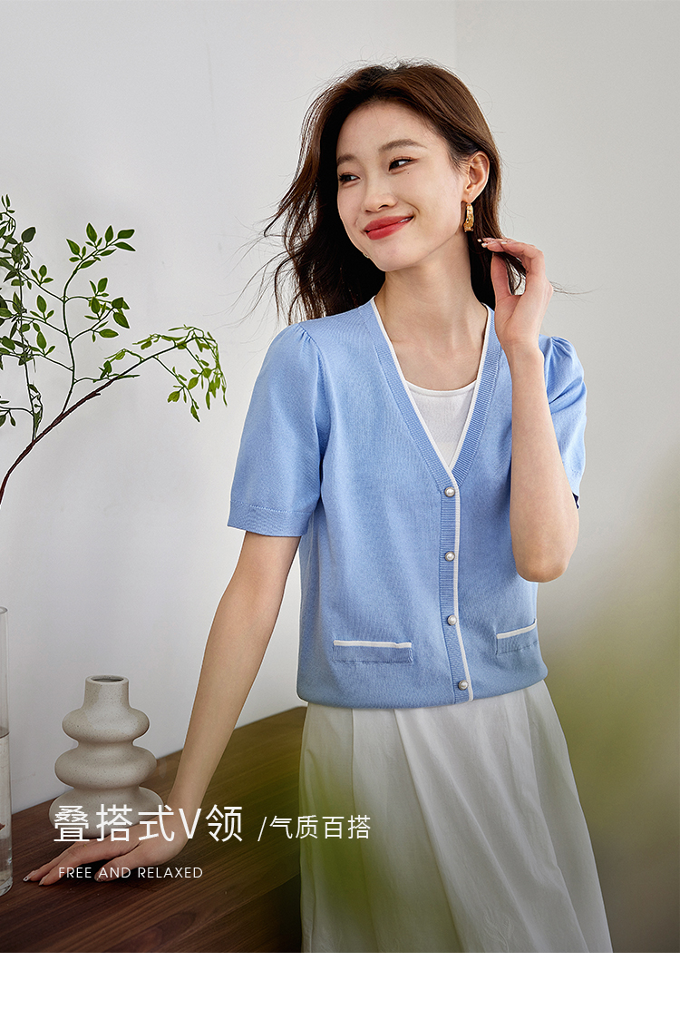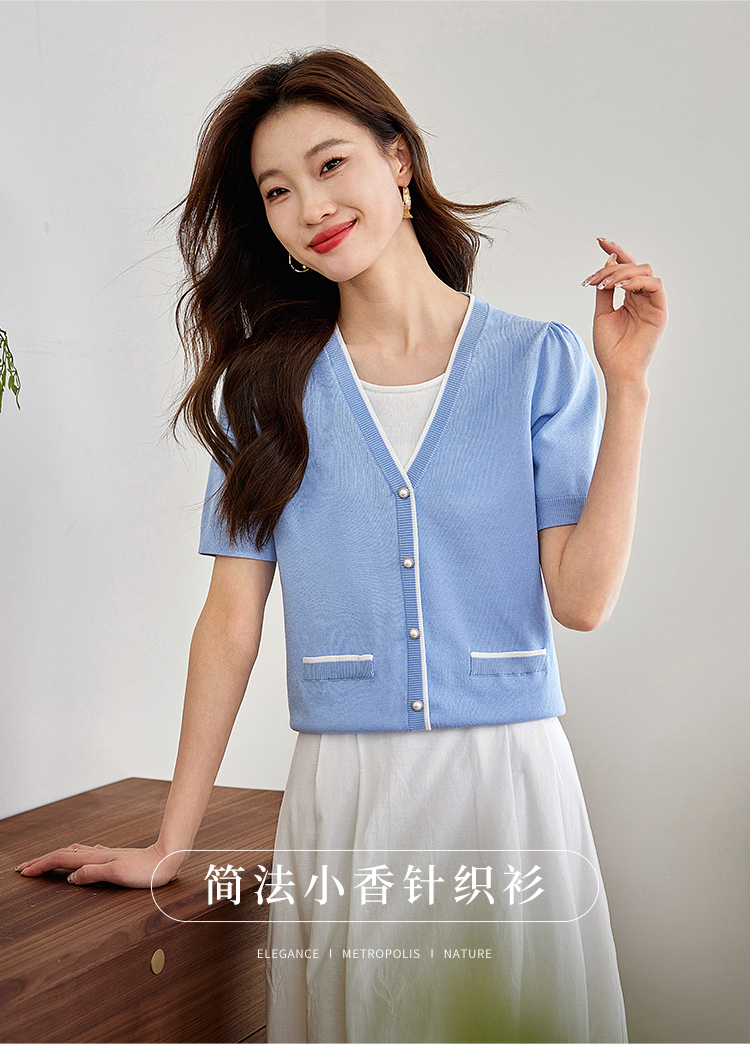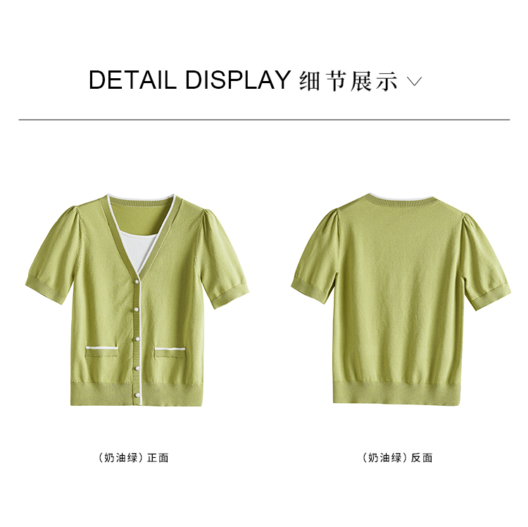 【专属特价】熙世界假两件薄款冰丝针织衫女短袖夏季小香风时尚上衣2025年新款