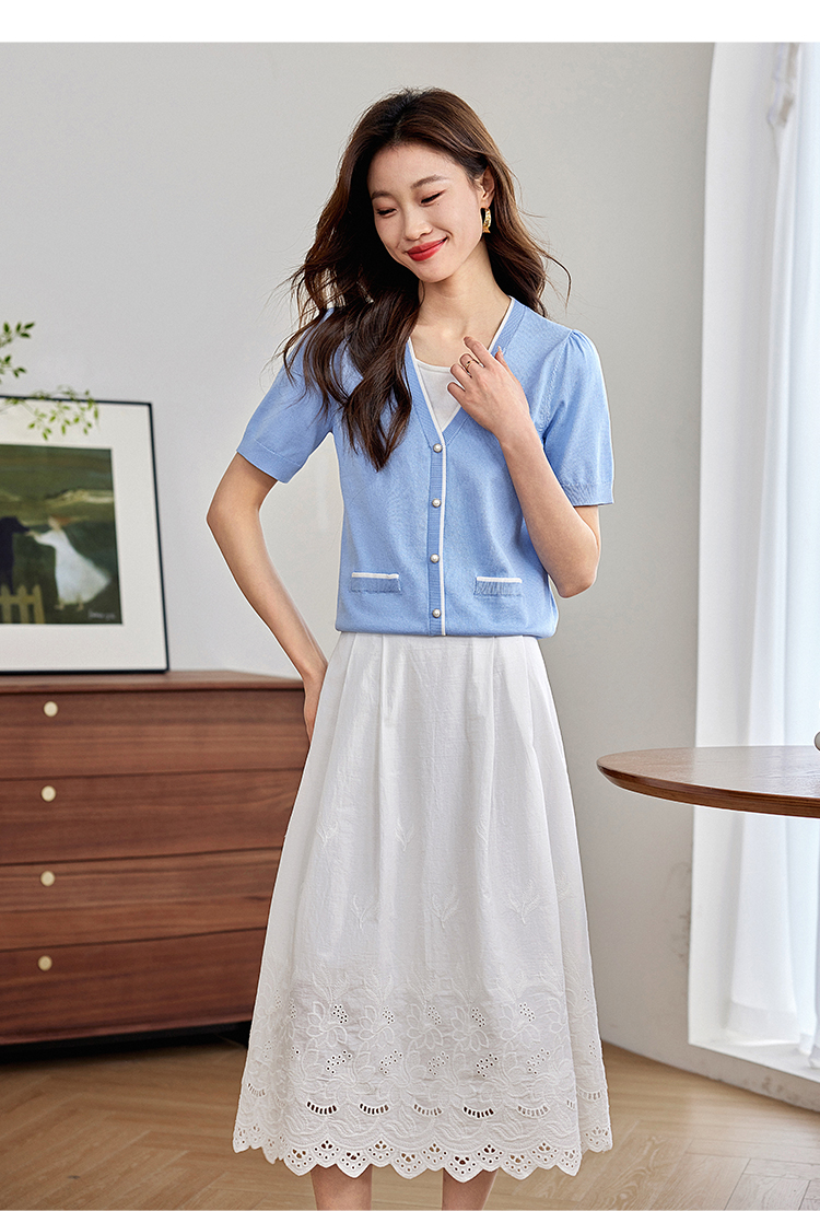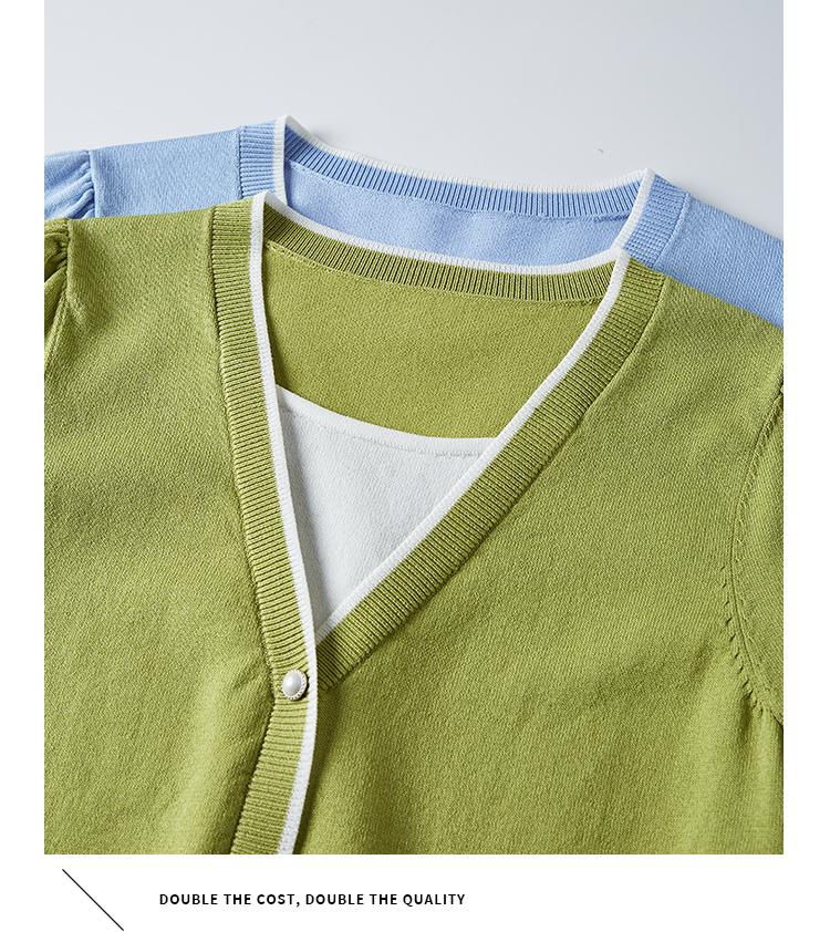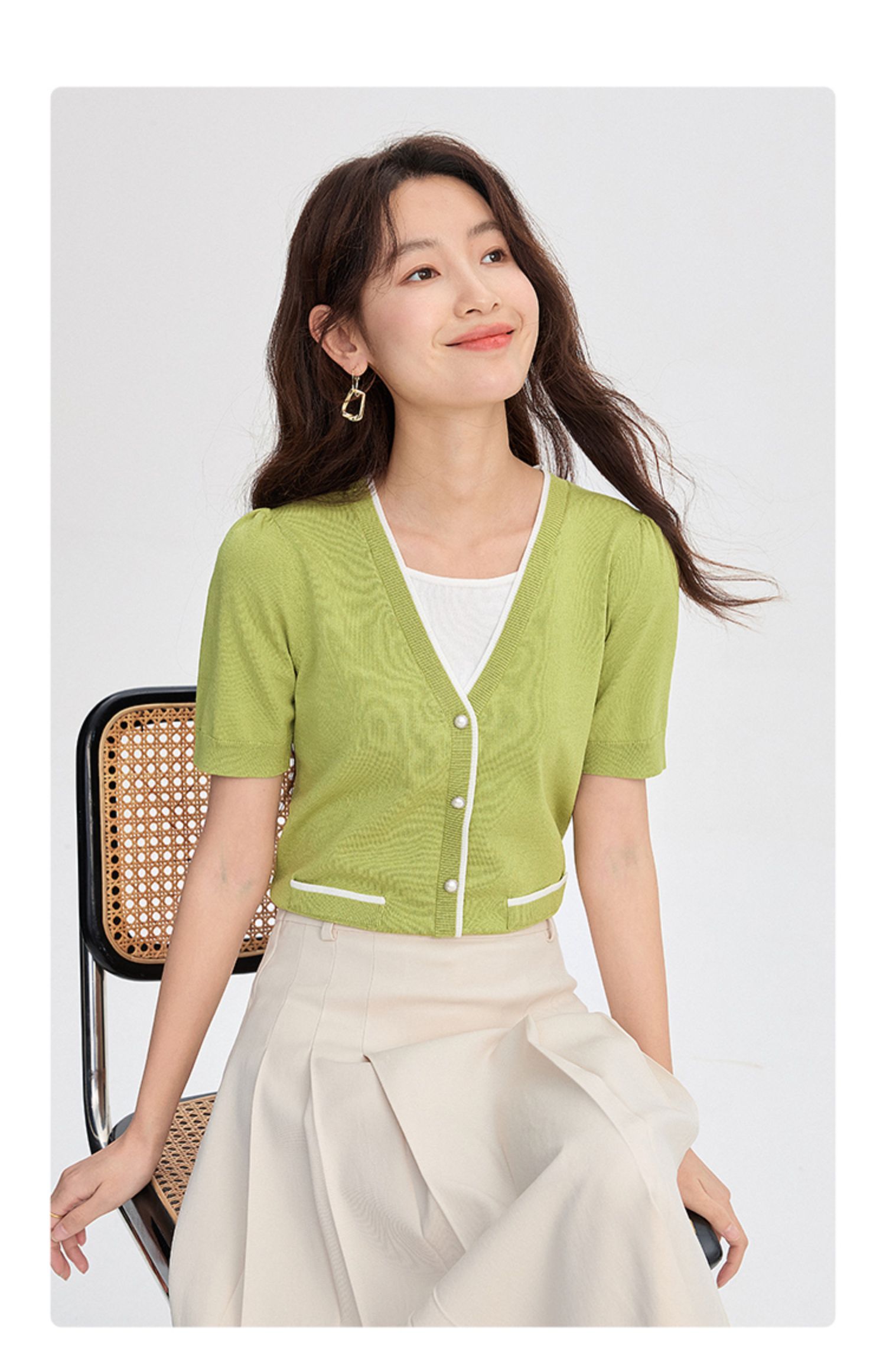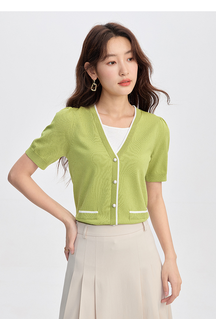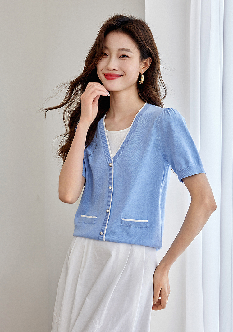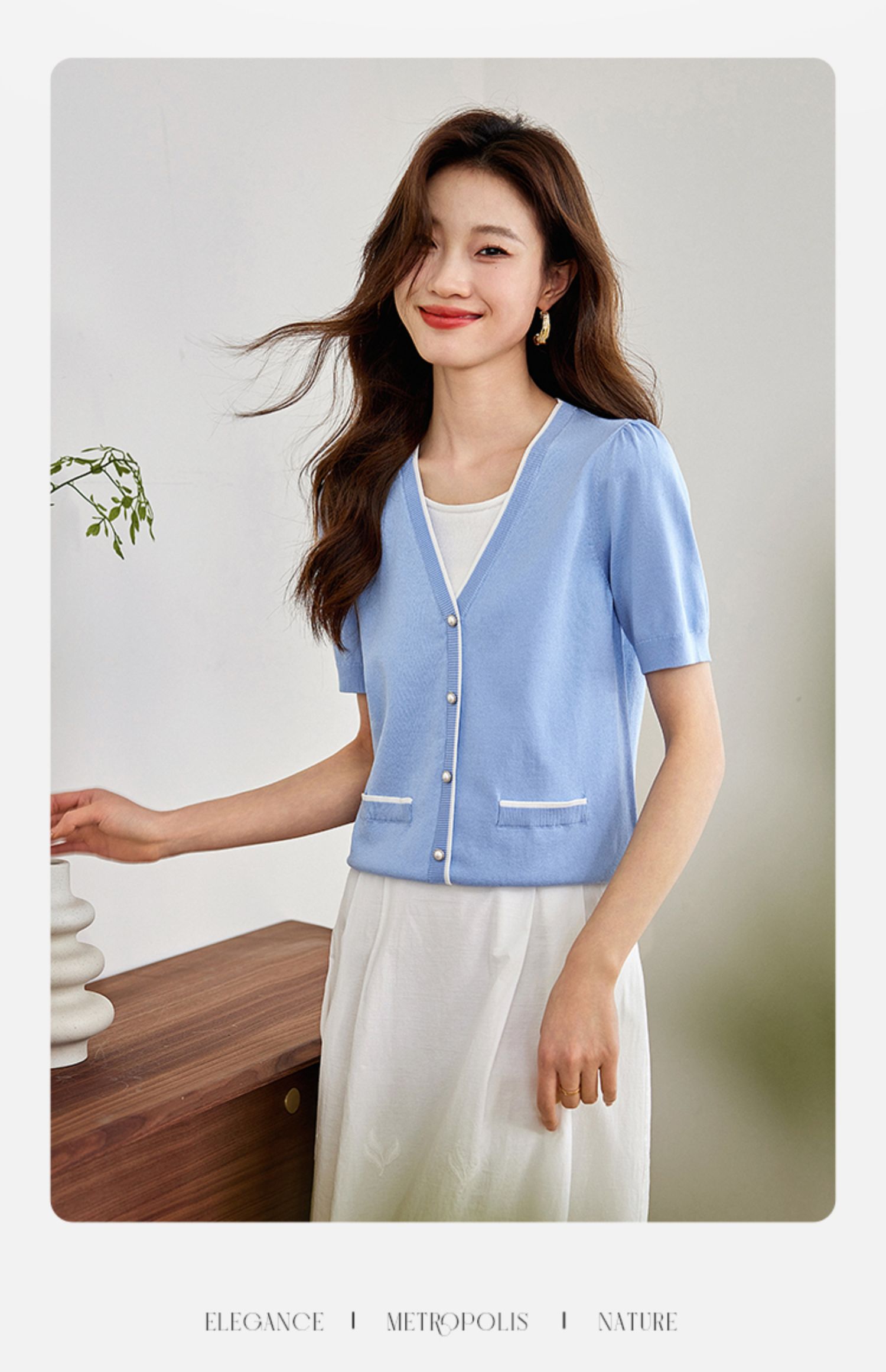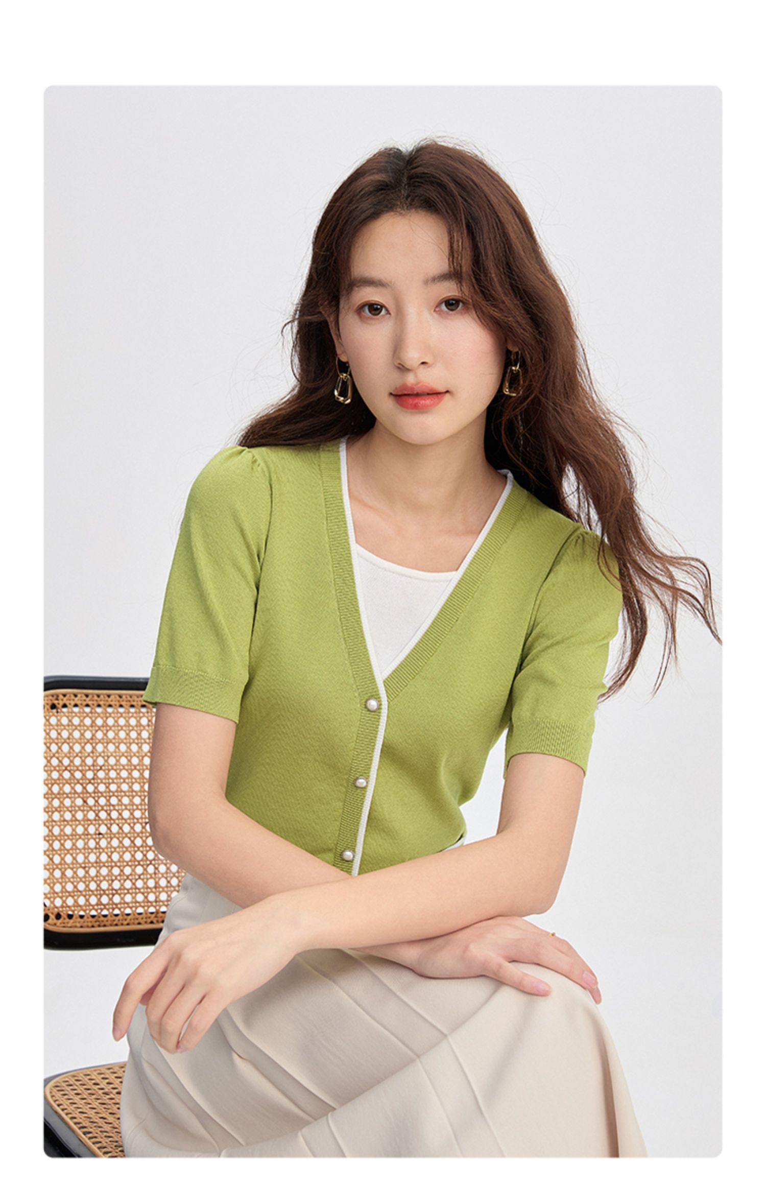 【专属特价】熙世界假两件薄款冰丝针织衫女短袖夏季小香风时尚上衣2025年新款