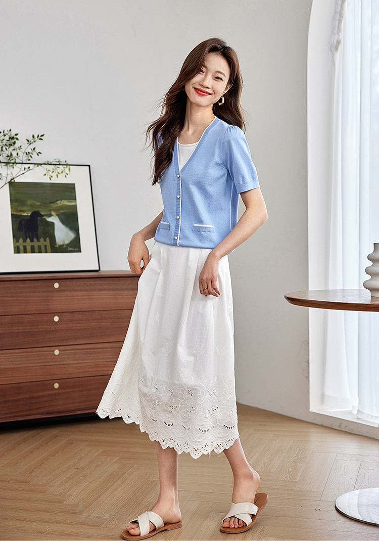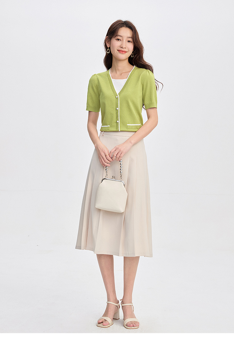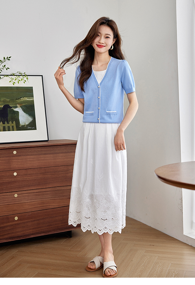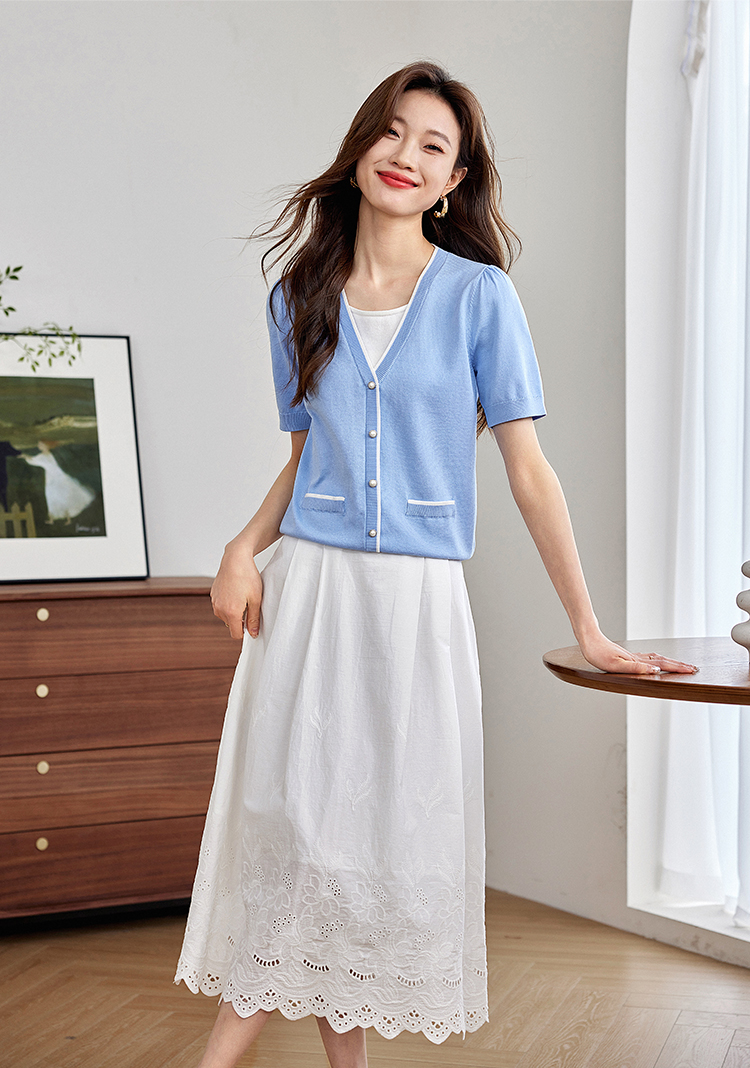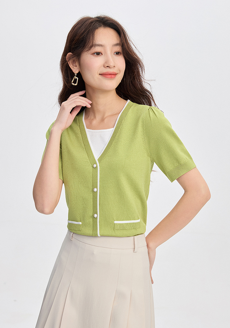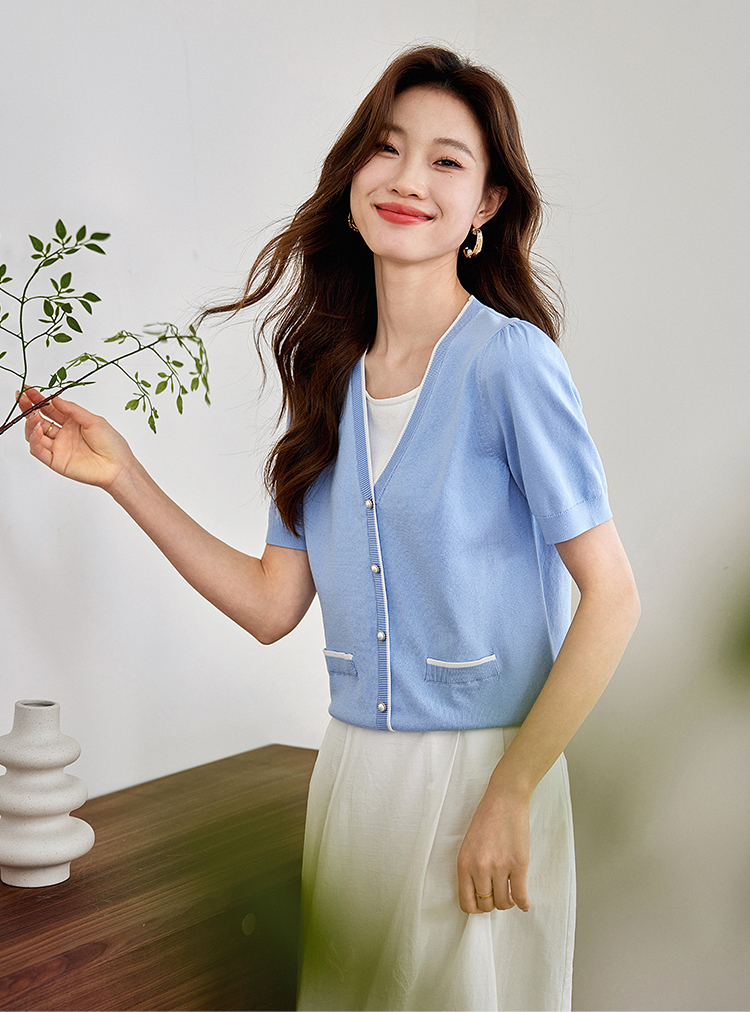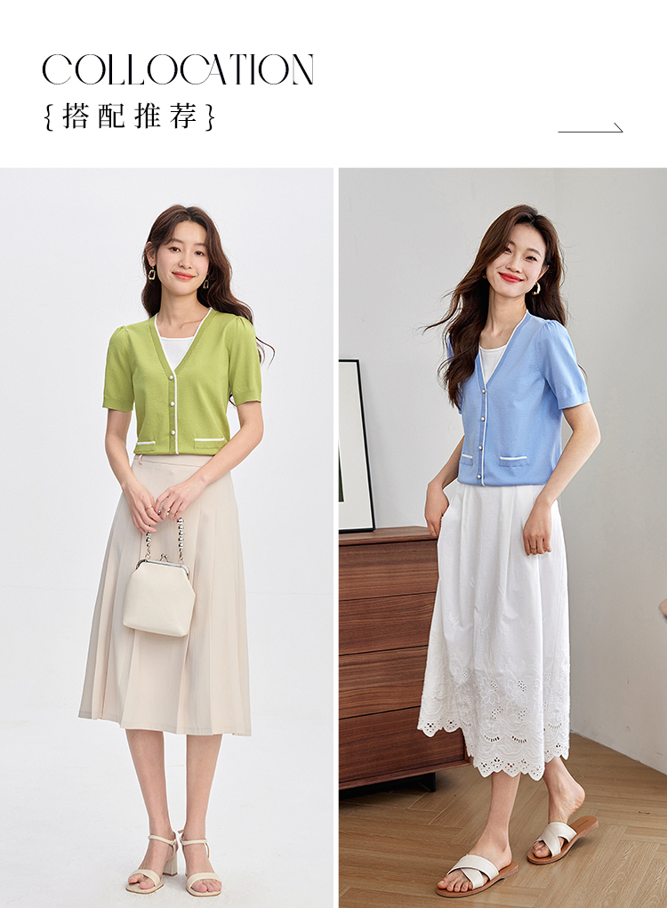 【专属特价】熙世界假两件薄款冰丝针织衫女短袖夏季小香风时尚上衣2025年新款