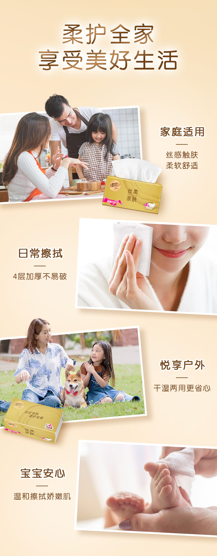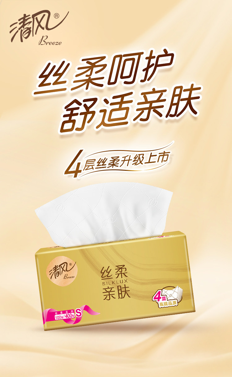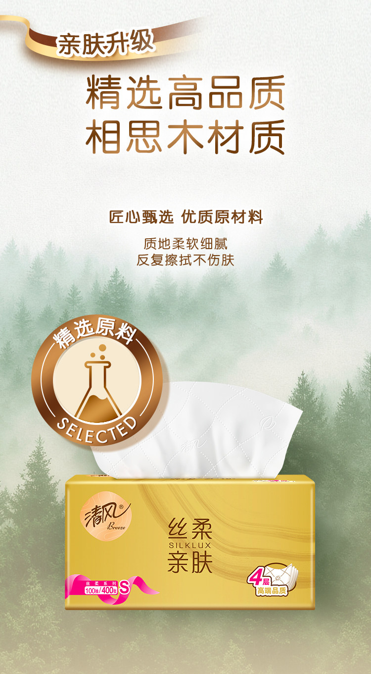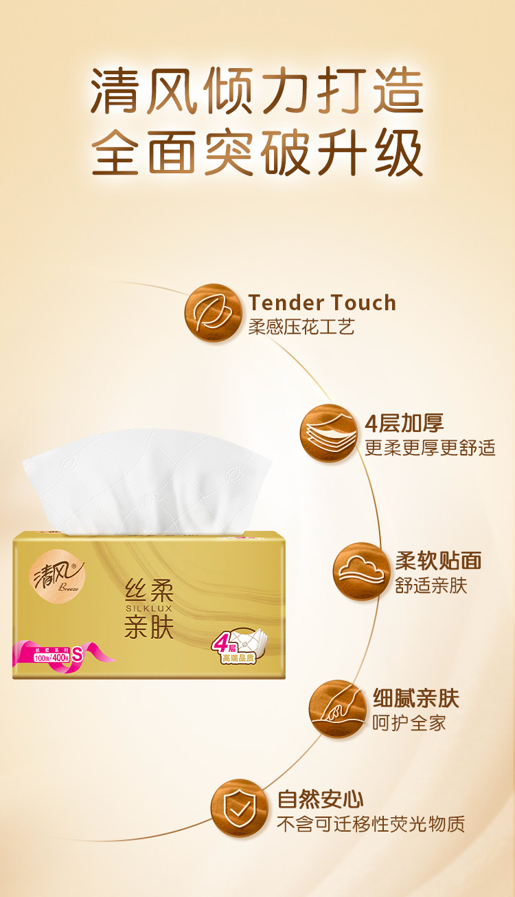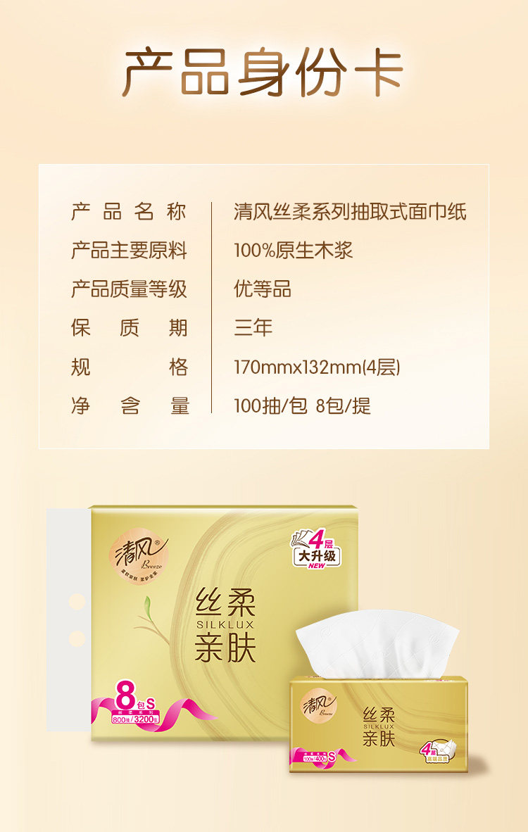 清风 金装抽纸 【1提8包(800抽】 四层原木纯品 家用纸巾面巾纸餐巾纸卫生纸