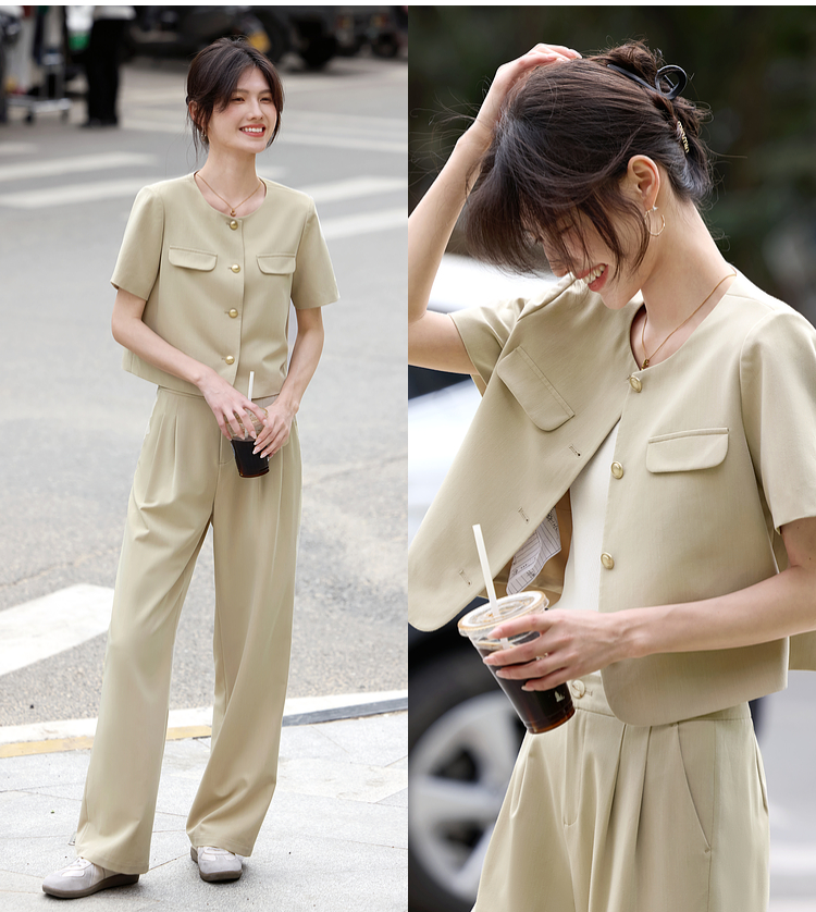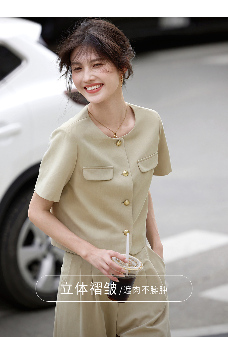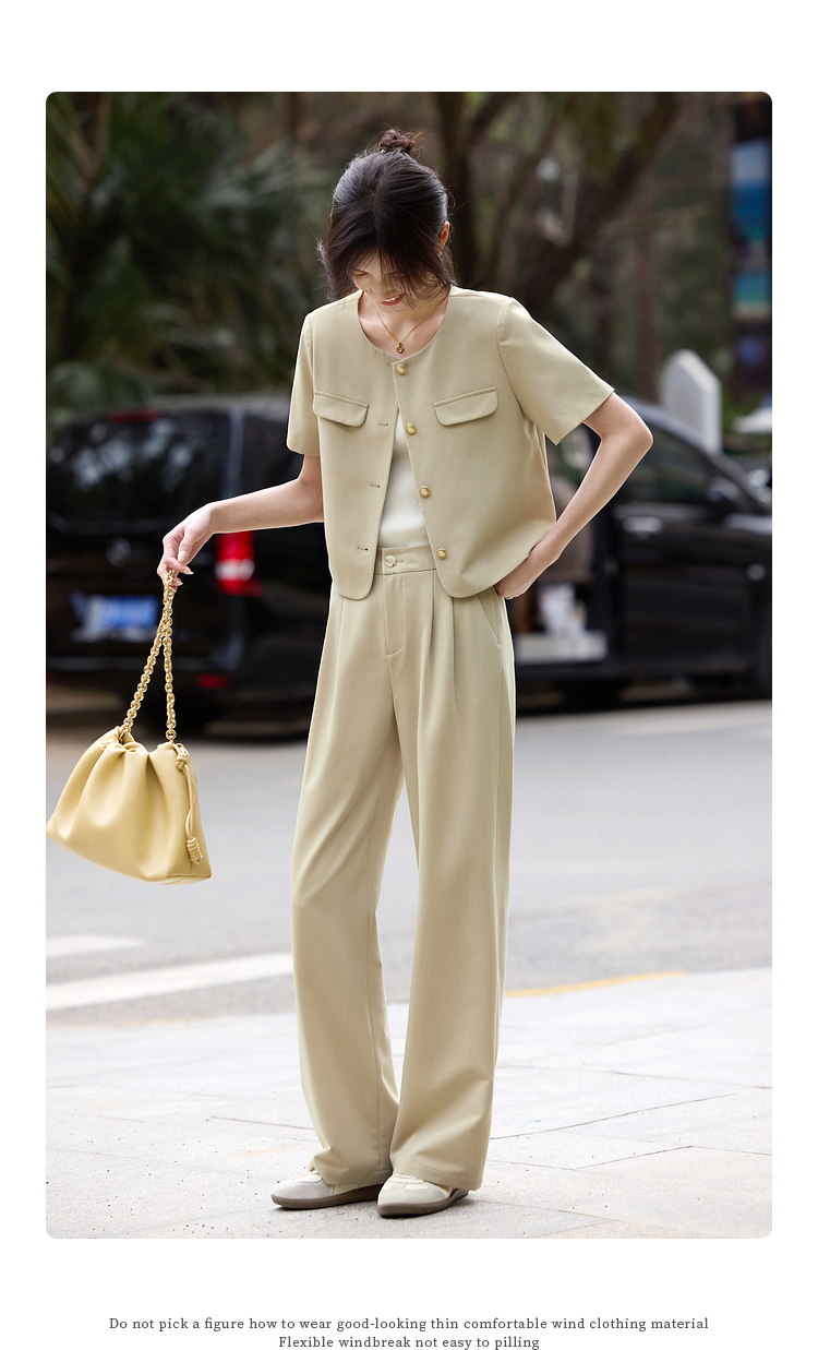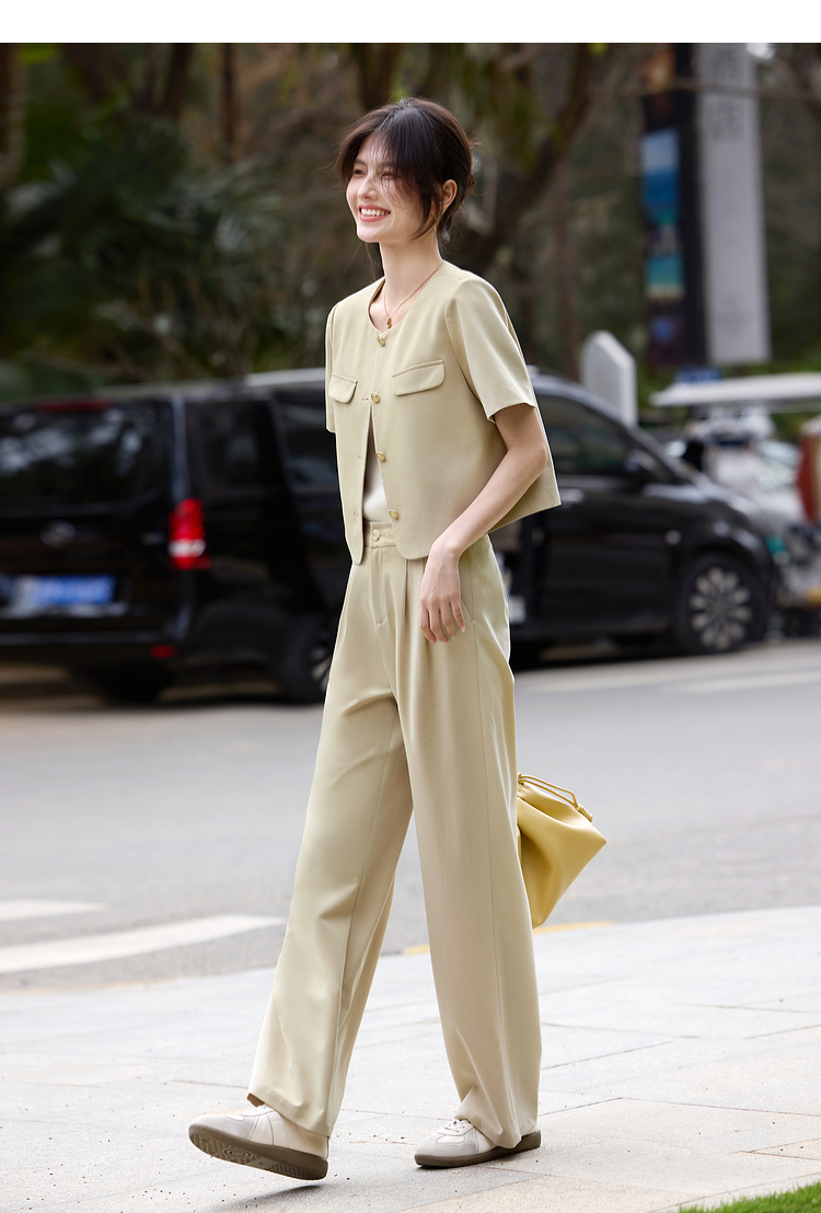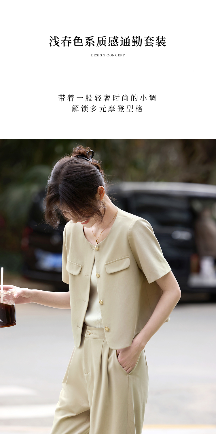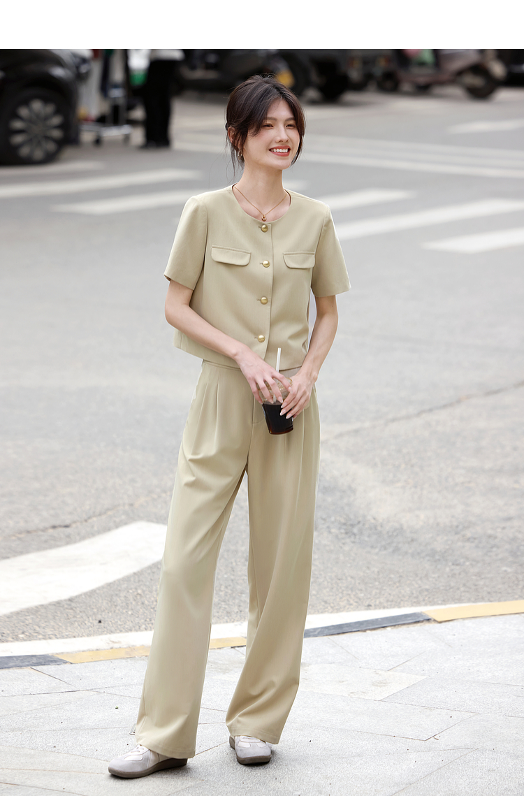 【专属特价】熙世界通勤短袖西装休闲裤套装女2025年夏季新款教职轻职场两件套
