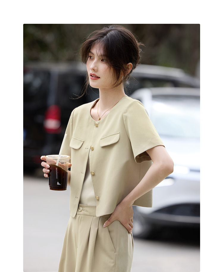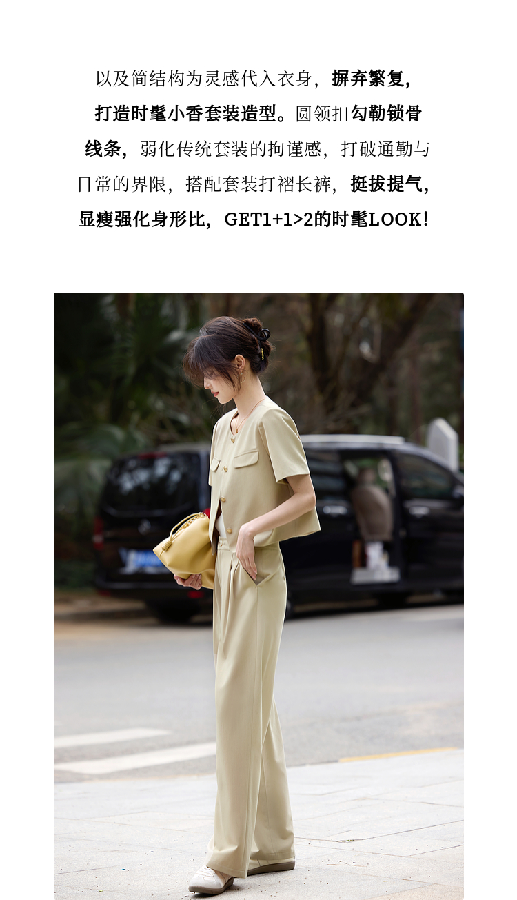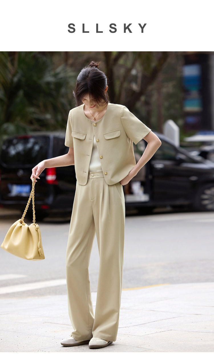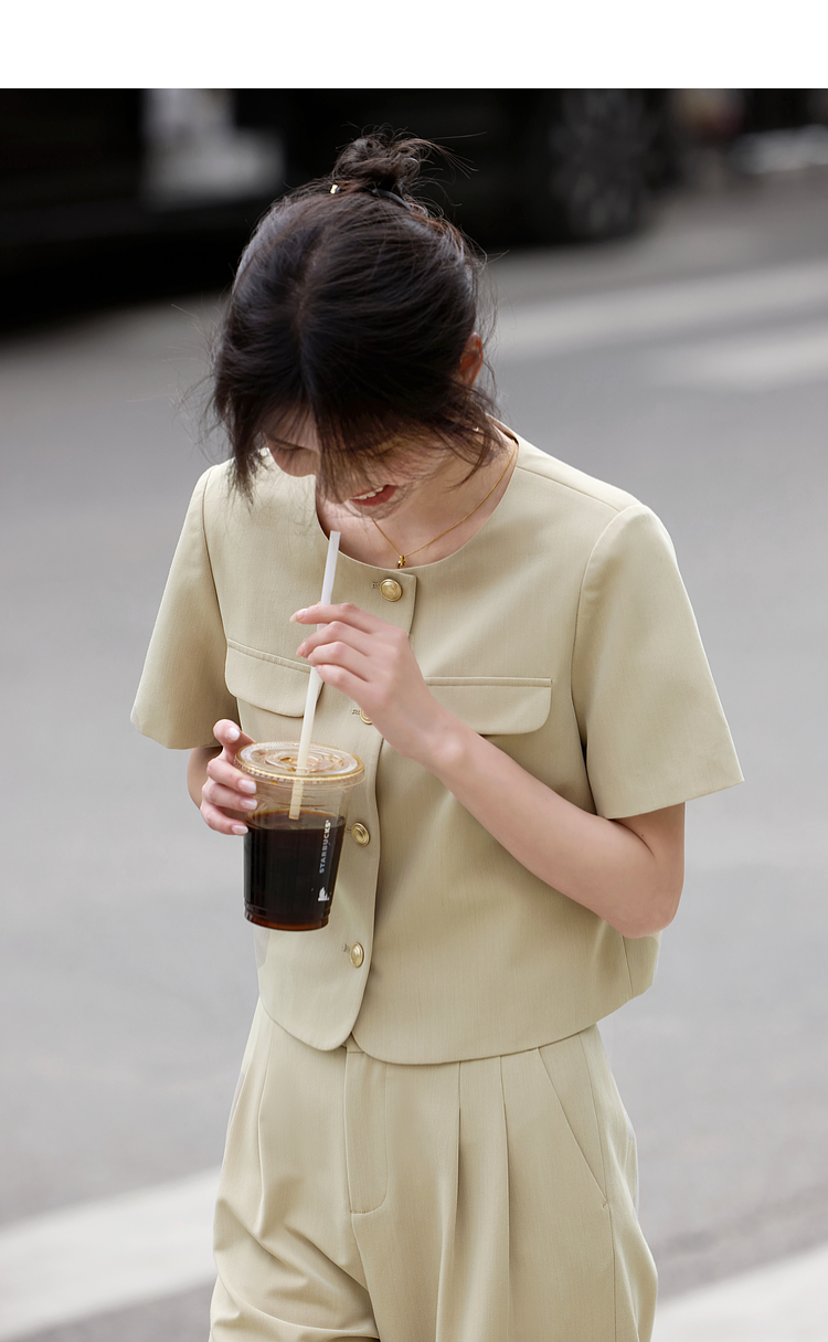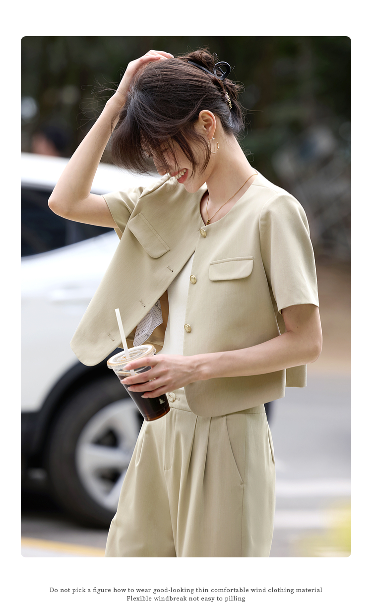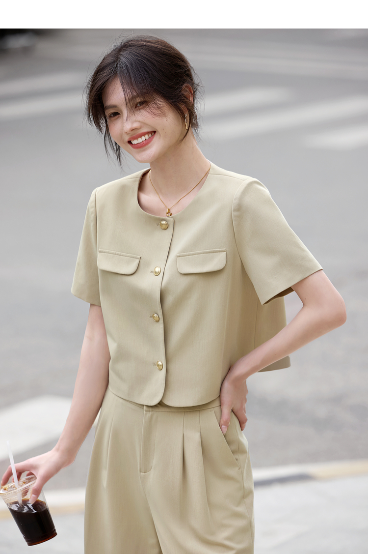 【专属特价】熙世界通勤短袖西装休闲裤套装女2025年夏季新款教职轻职场两件套