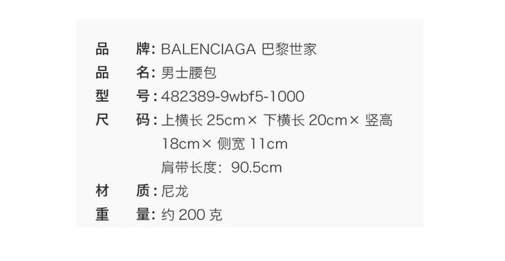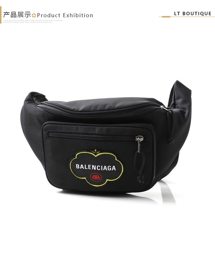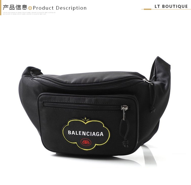 BALENCIAGA 巴黎世家 男士水果徽标贴片潮流个性胸包腰包 黑色 482389 9WBF5 1000