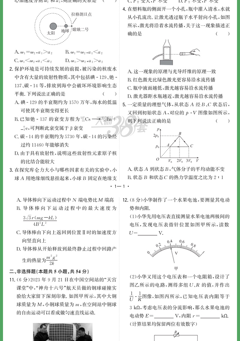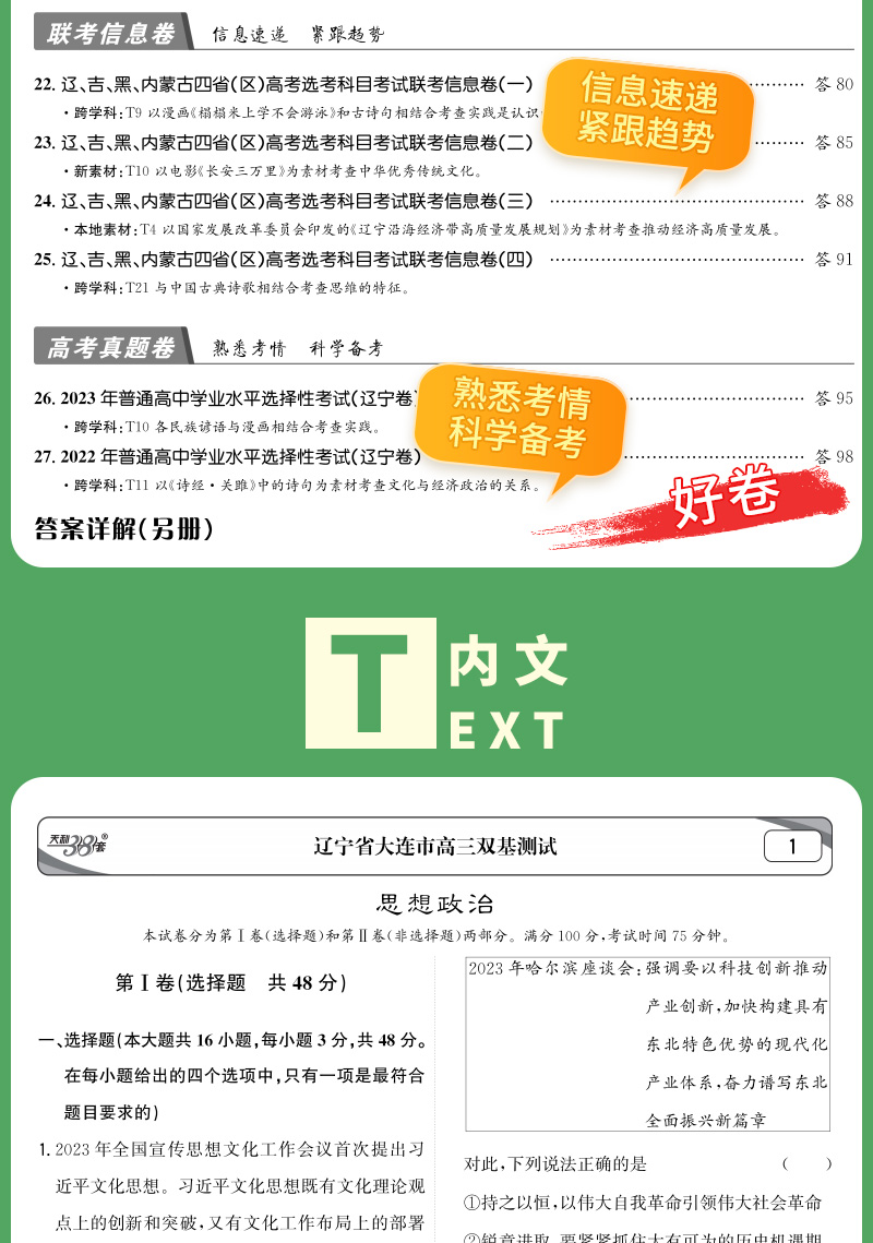 天利38套 2025高考模拟试题汇编(辽宁 吉林 黑龙江 内蒙古)物理 化学 生物 政治 历史 地理