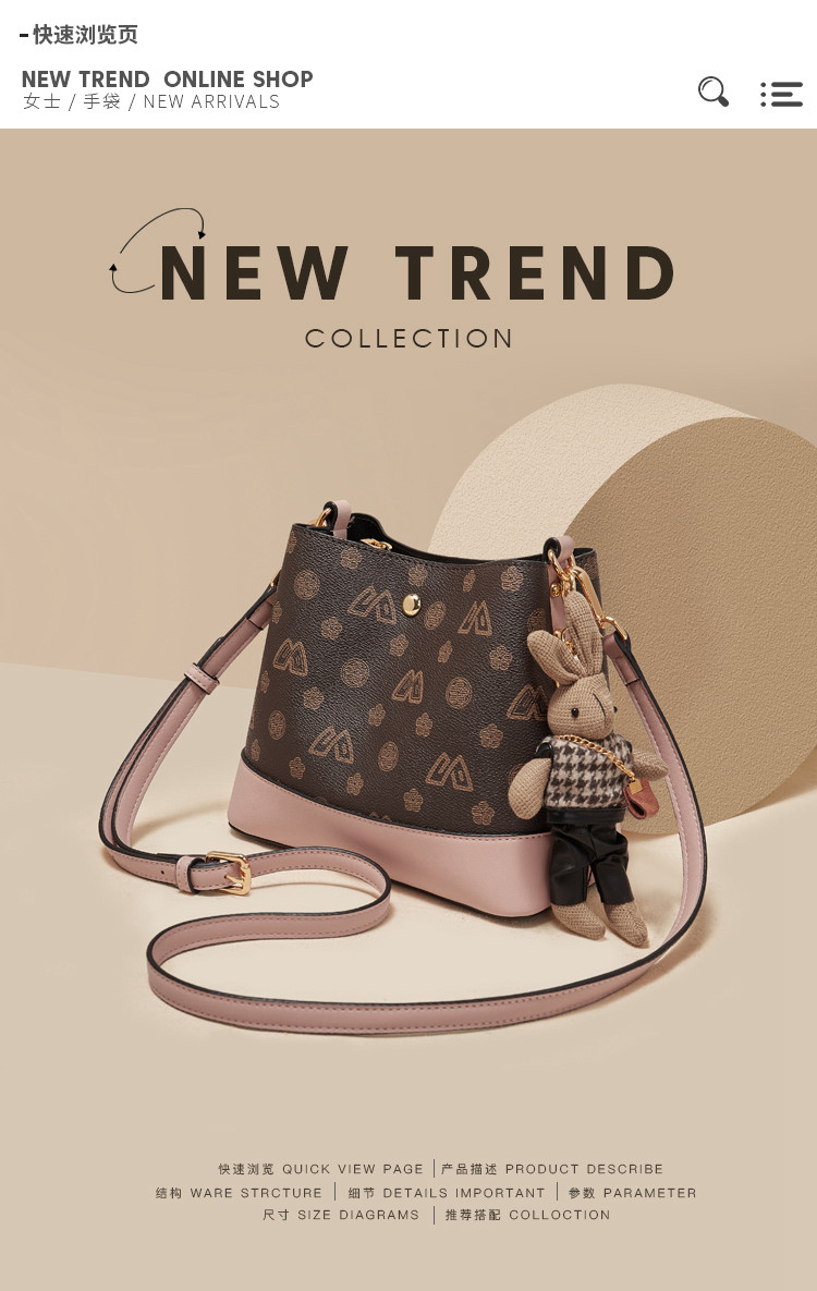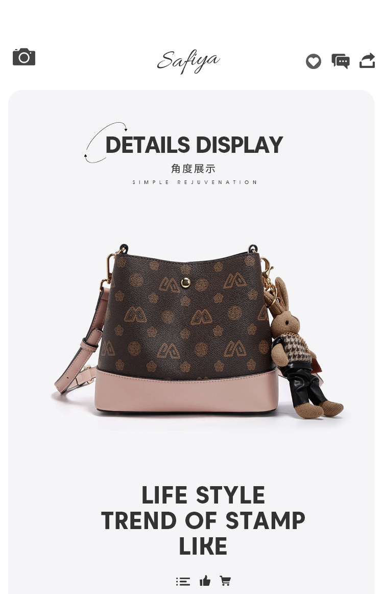 Safiya/索菲娅包包2022新款手提包水桶包单肩包女式斜挎包女包 SF9151017Y