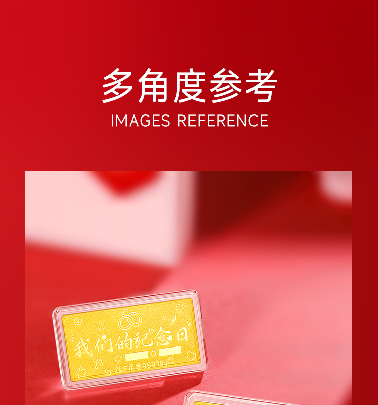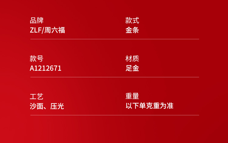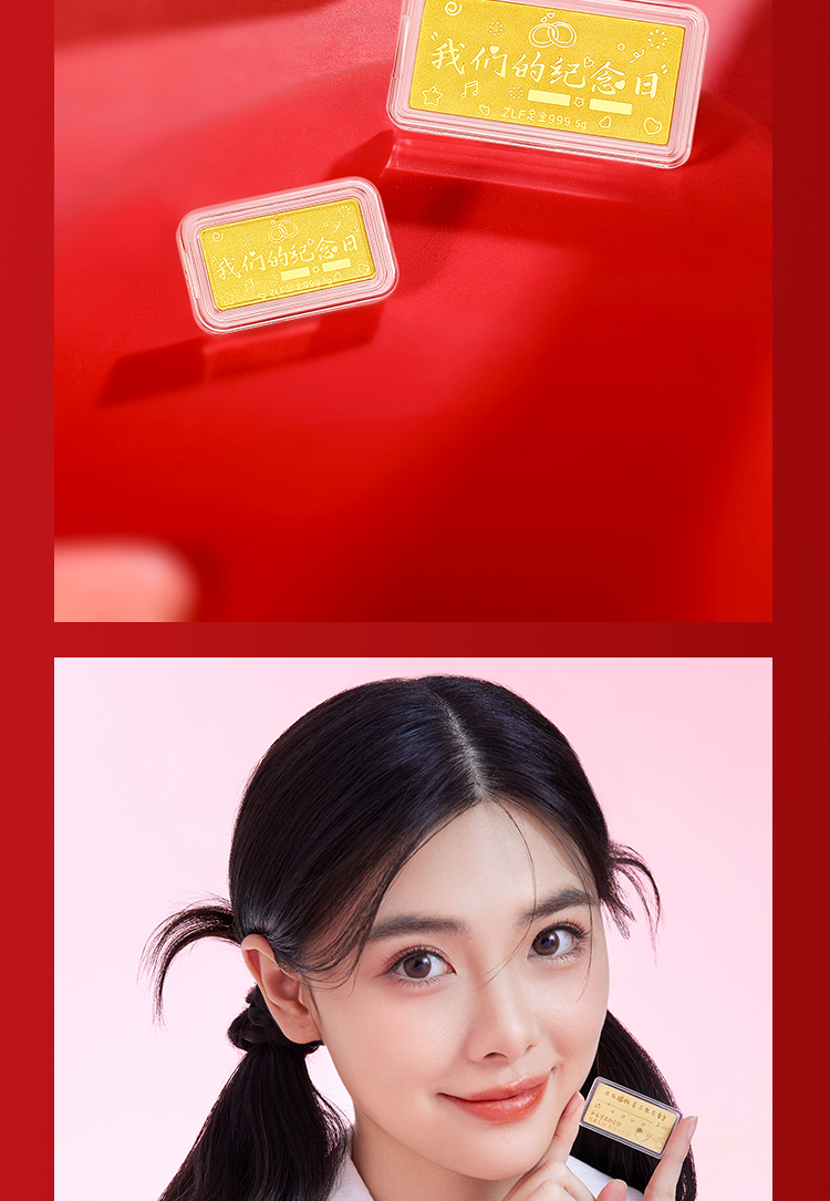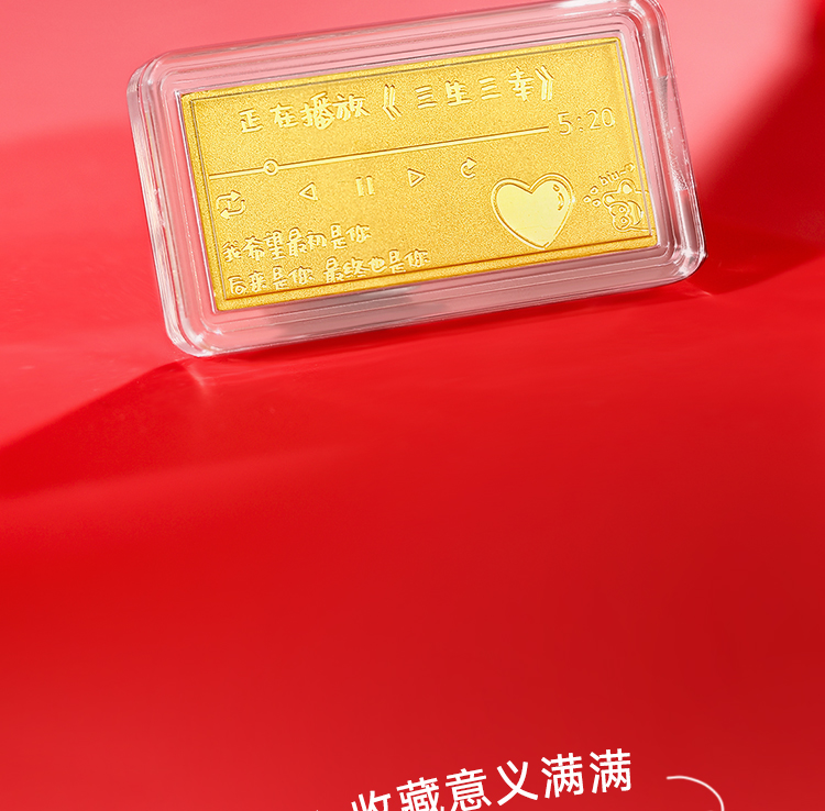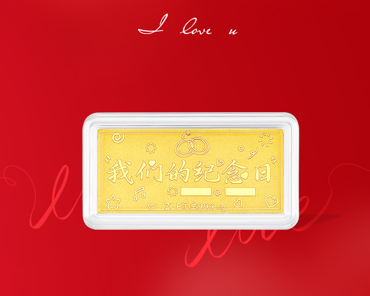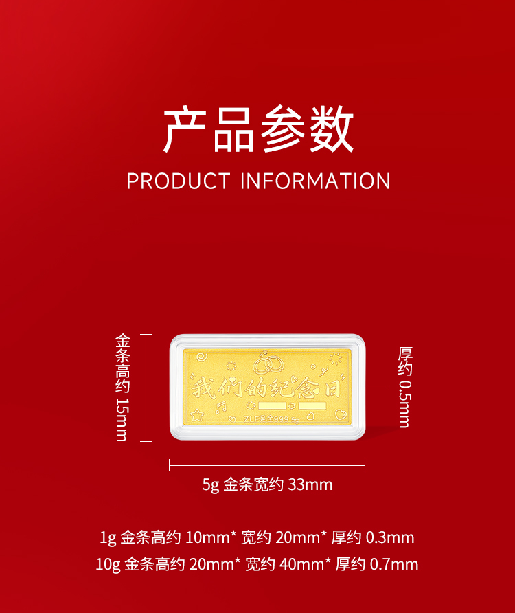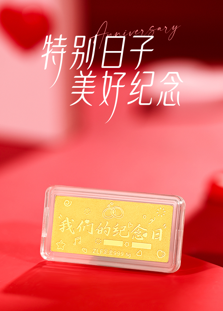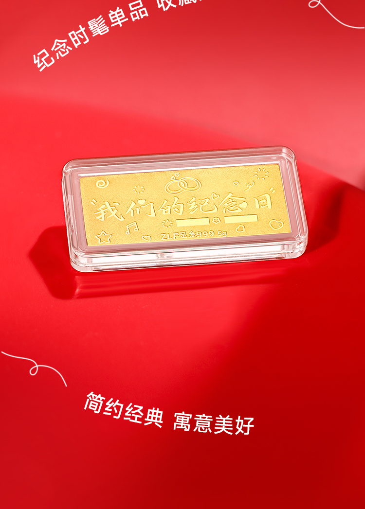 周六福投资金纪念日金条足金计价5g黄金储值送女友送女友礼物