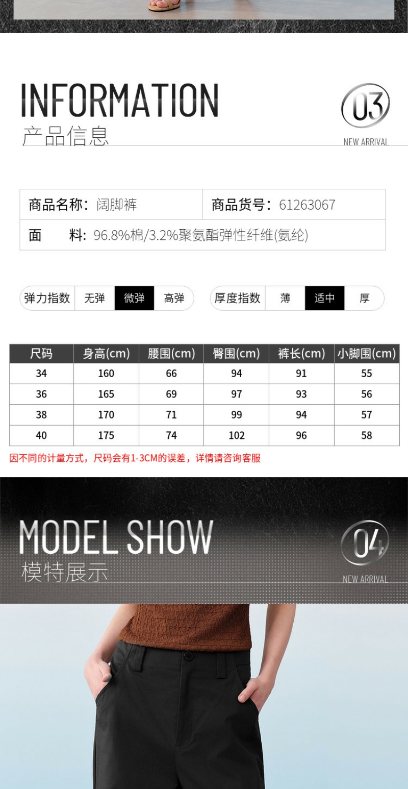 G2000女装SS26年商场新款【棉质弹性】舒适百搭七分阔脚休闲裤61263067