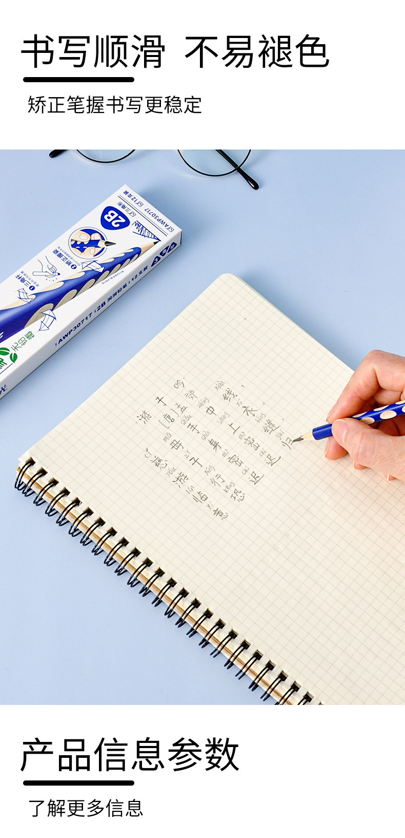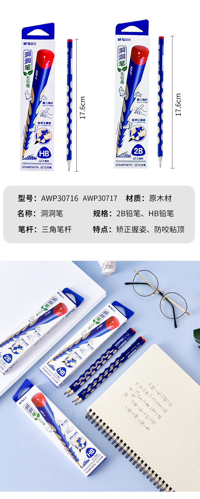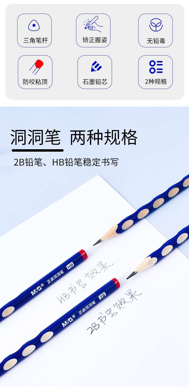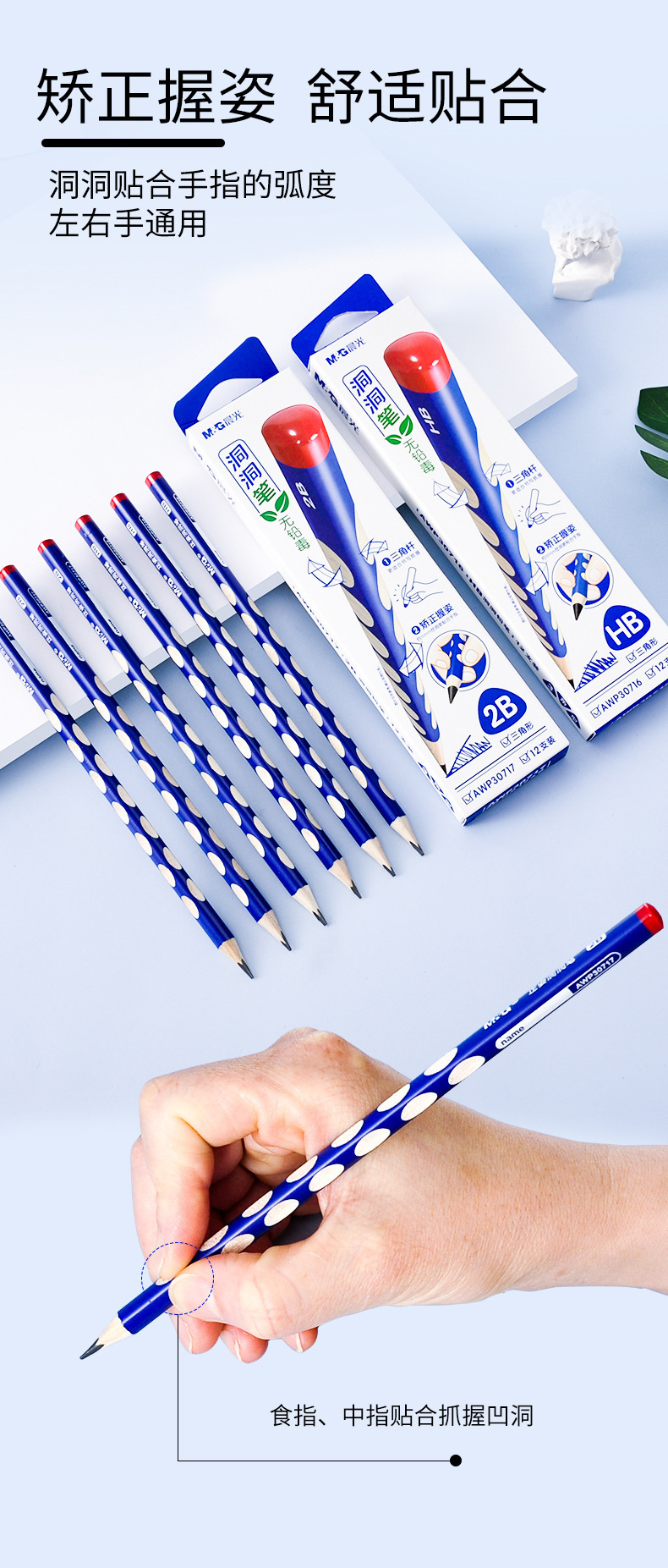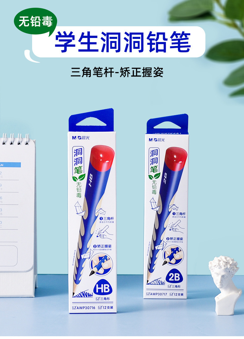 晨光洞洞笔盒装(12支)小学生矫正握姿专用笔2B/HB