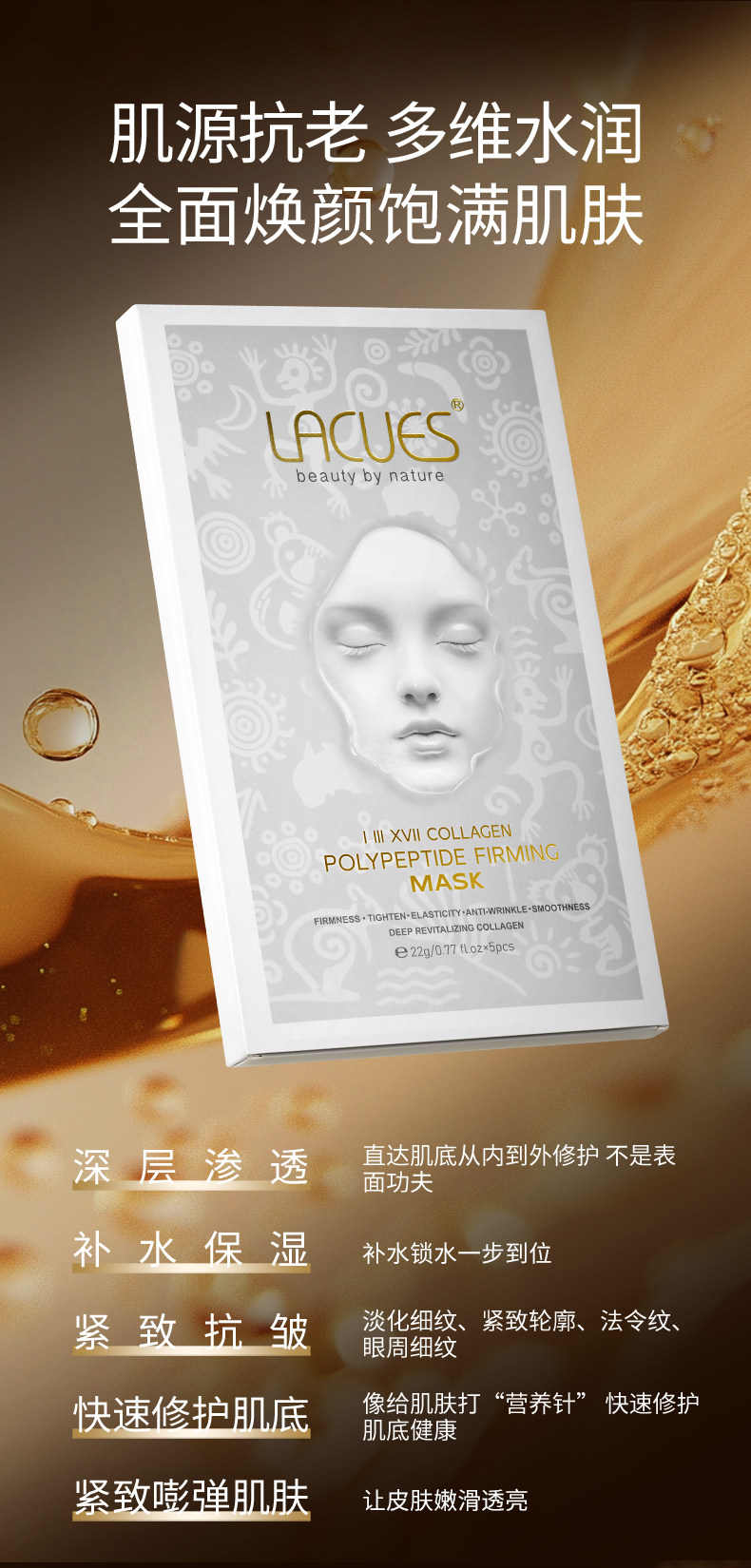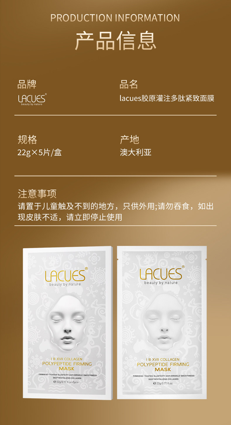 LACUES露可莳 胶原灌注多肽紧致面膜(5片装)