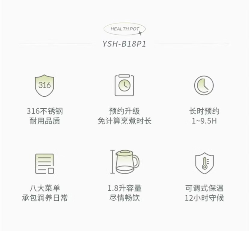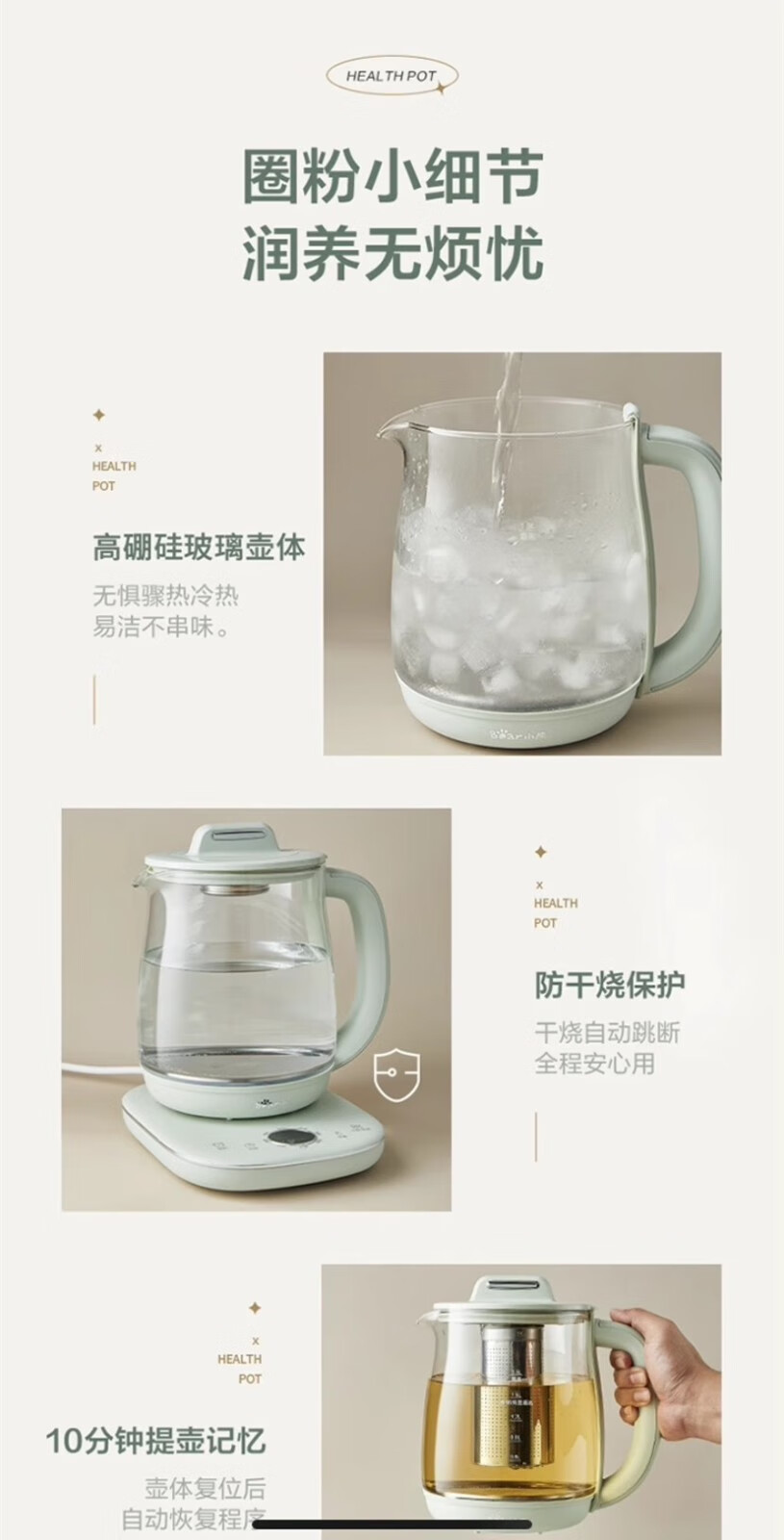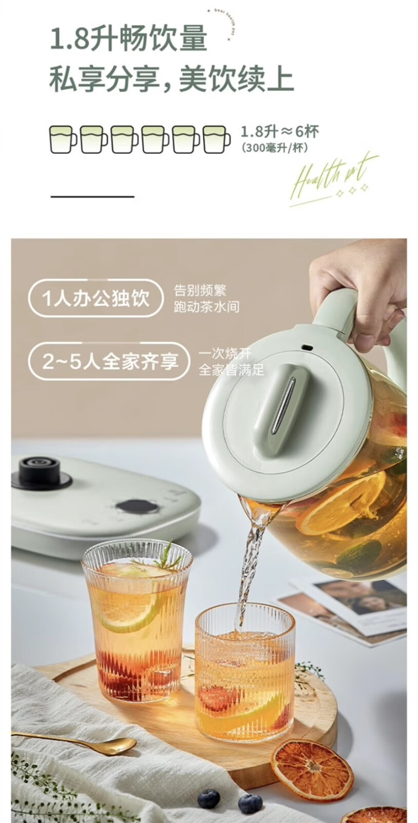 小熊YSH-B18P1养生壶煮茶壶电水壶花茶壶1.8L电热烧水壶