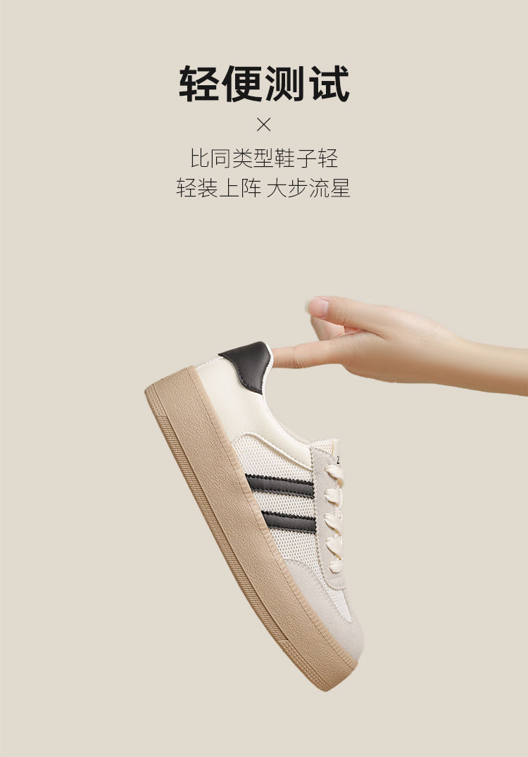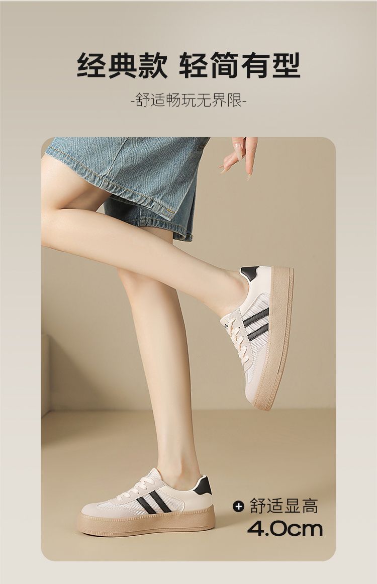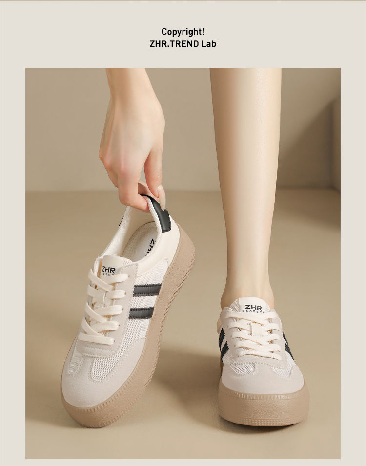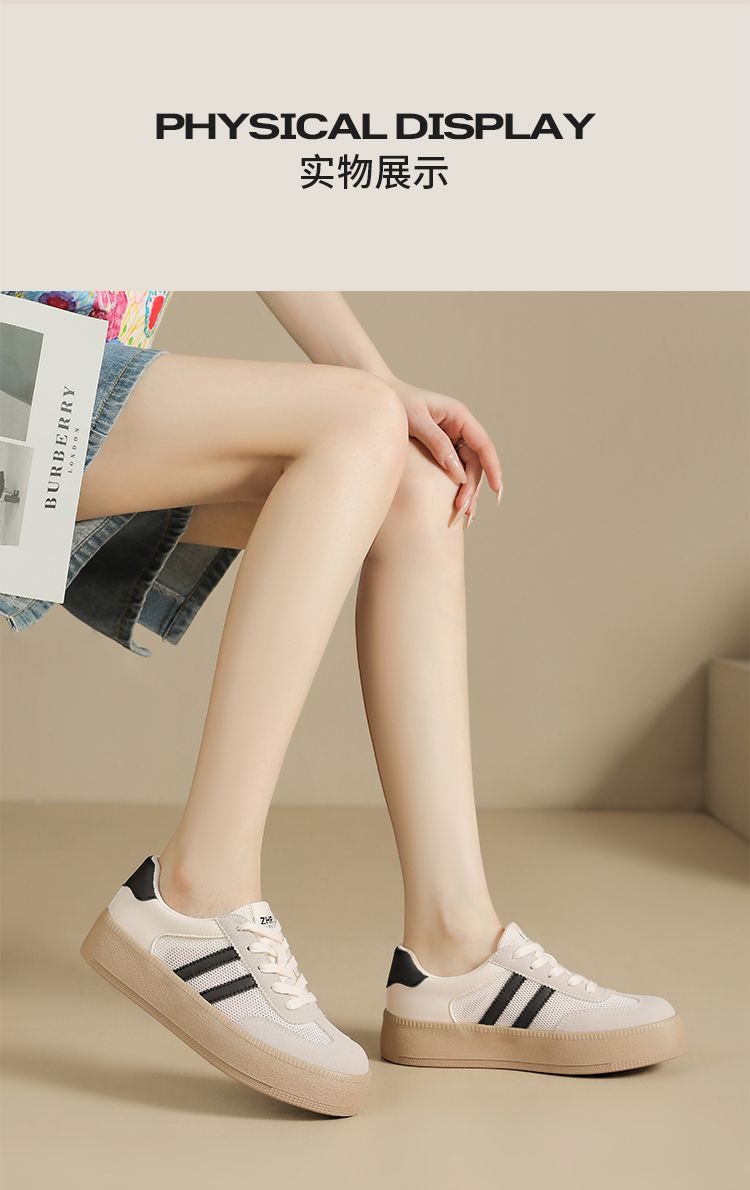 ZHR复古网面德训鞋透气小白鞋女百搭2025厚底增高板鞋软底休闲鞋