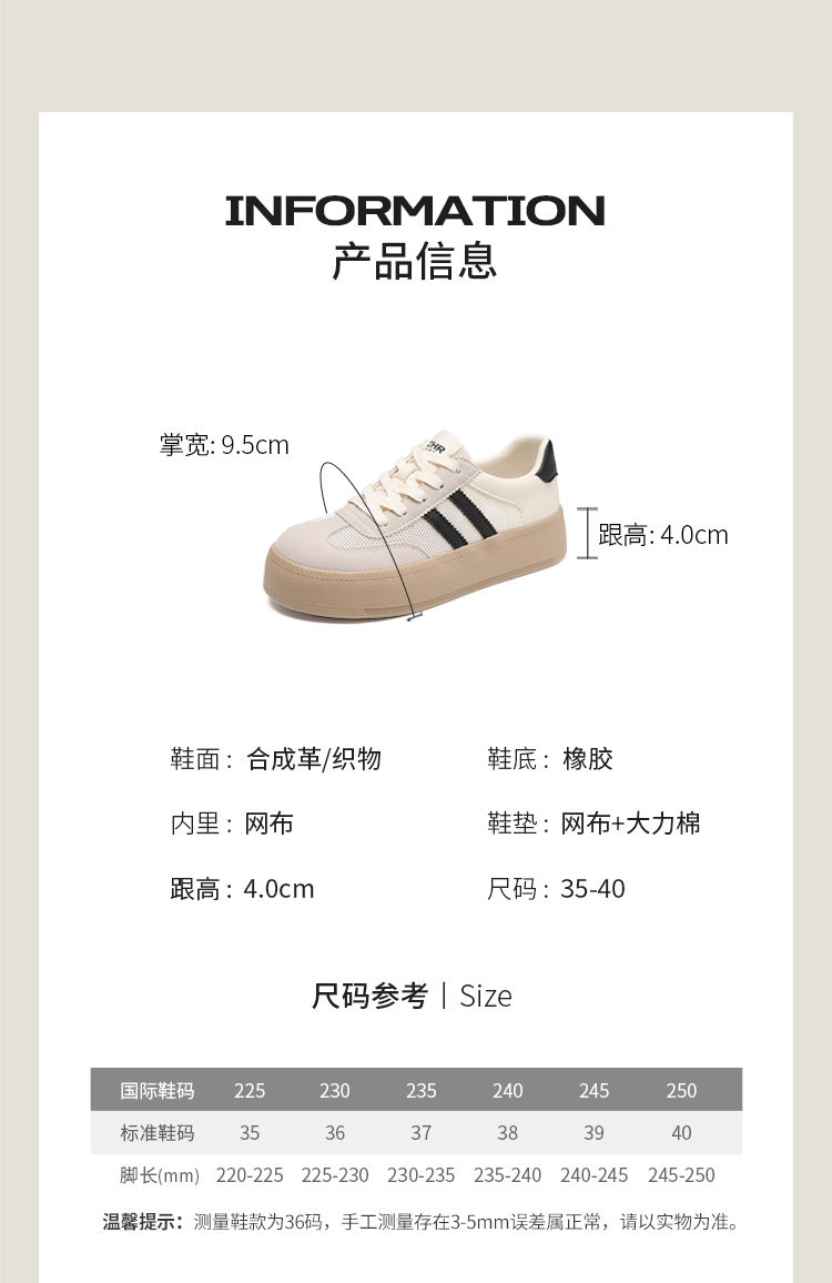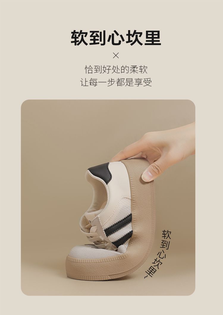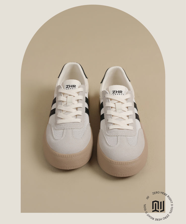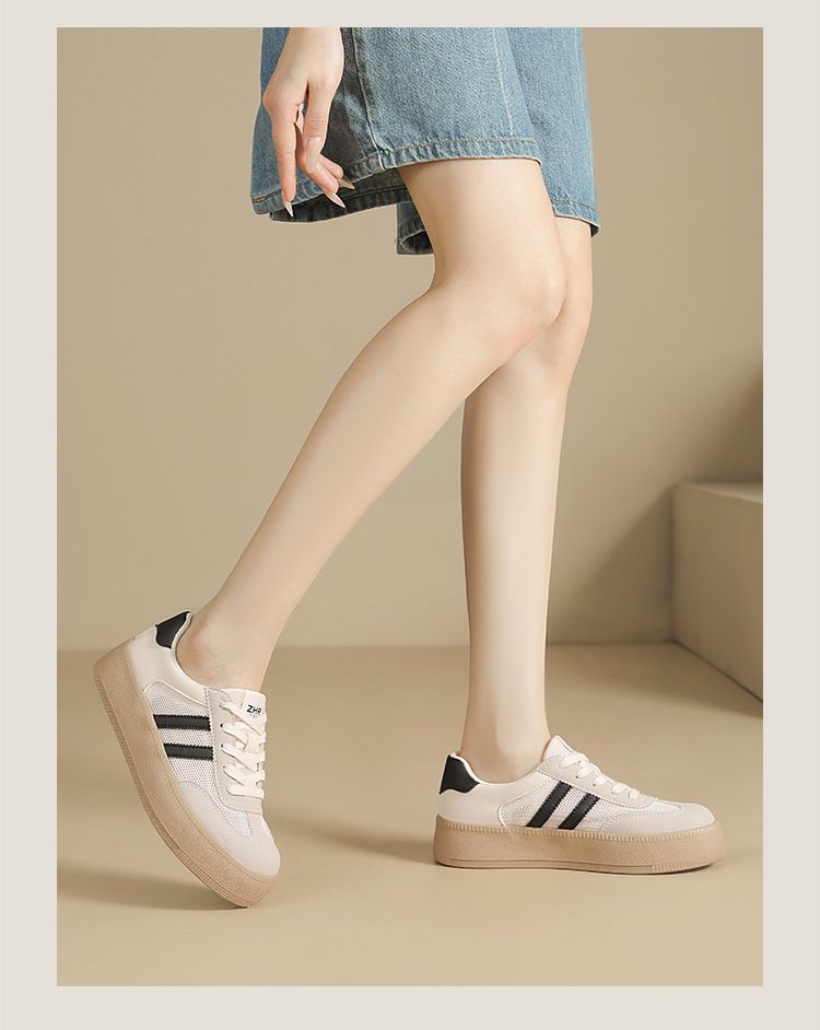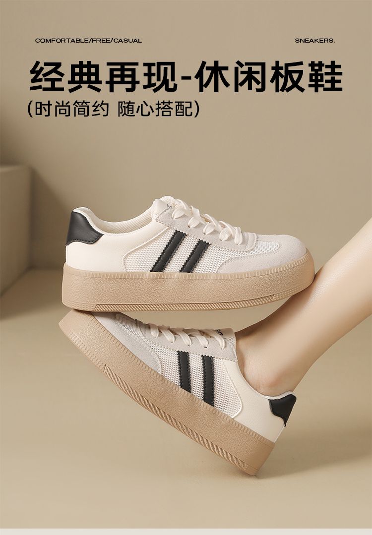 ZHR复古网面德训鞋透气小白鞋女百搭2025厚底增高板鞋软底休闲鞋