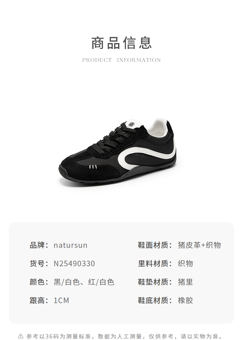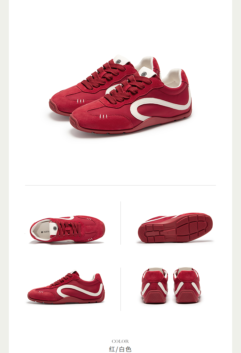natursun复古德训鞋女冬季新款薄底鞋轻便运动百搭休闲鞋女鞋N25490330