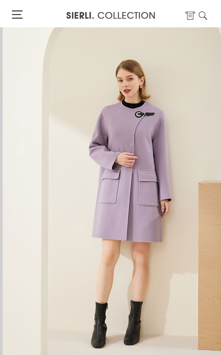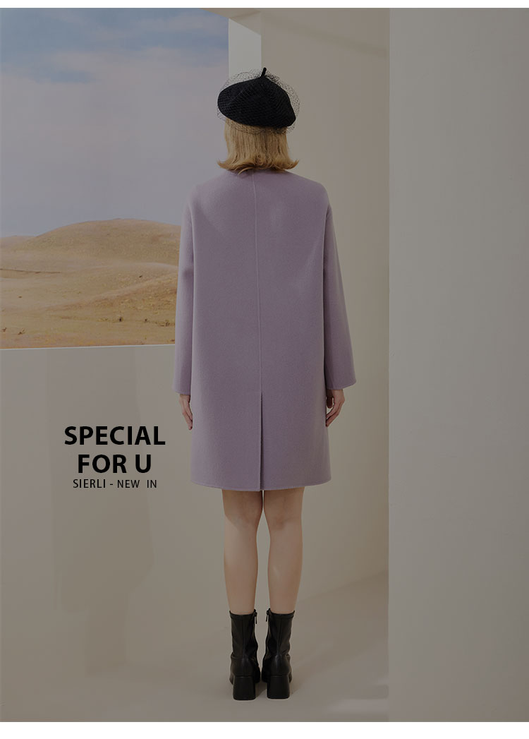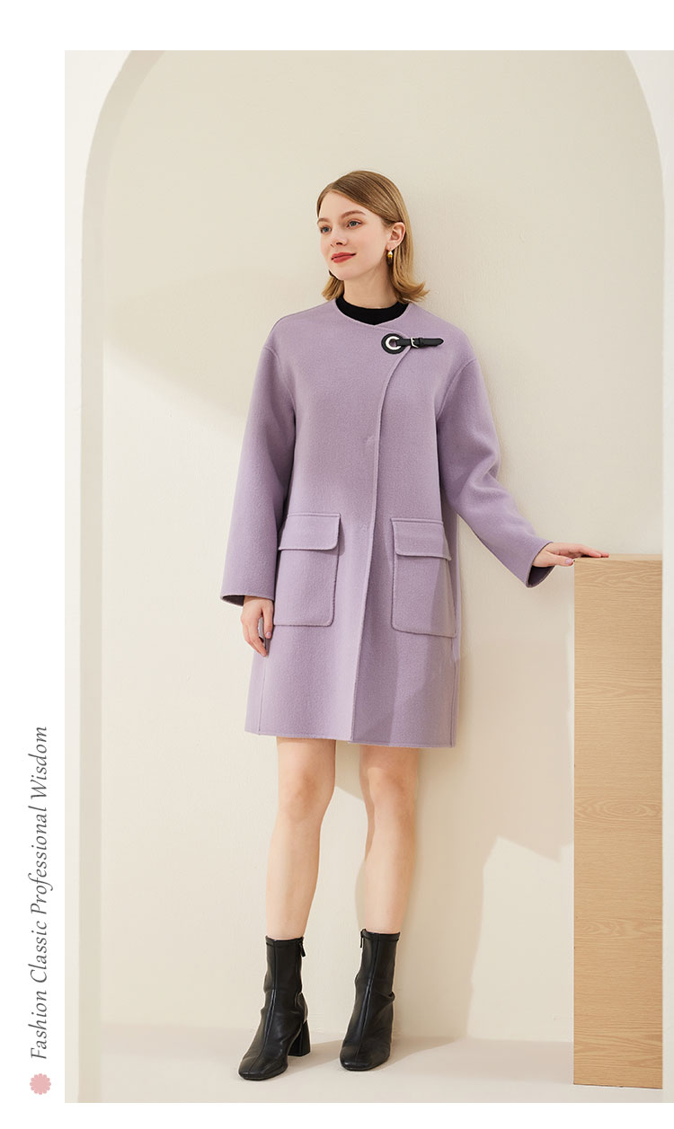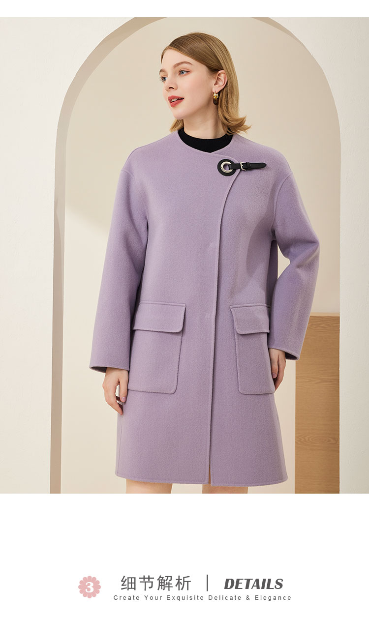MH9E9斯尔丽瑟俪2022年冬上新商场同款圆领时尚皮搭扣大口袋中长款大衣