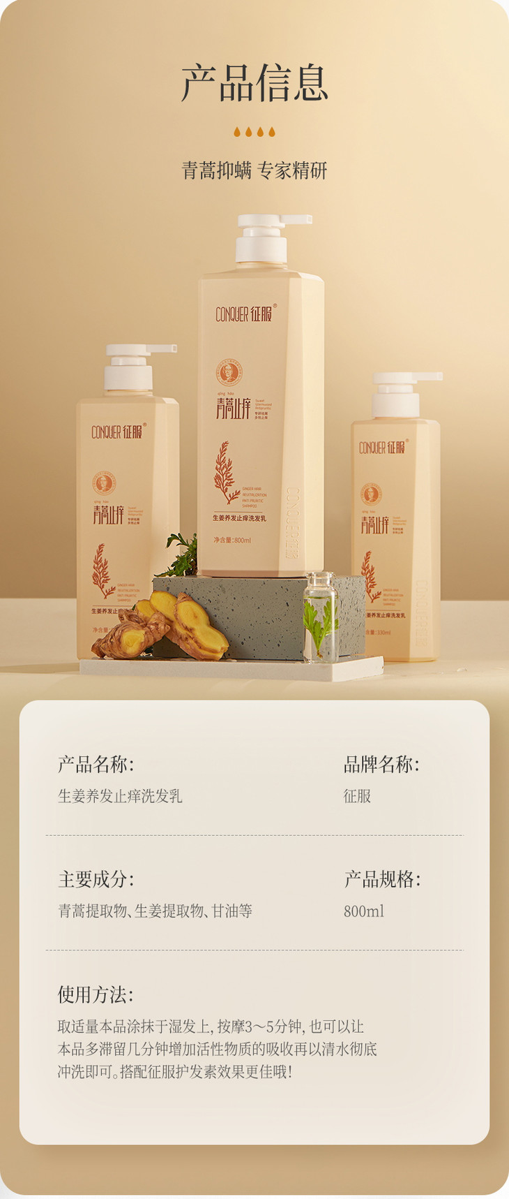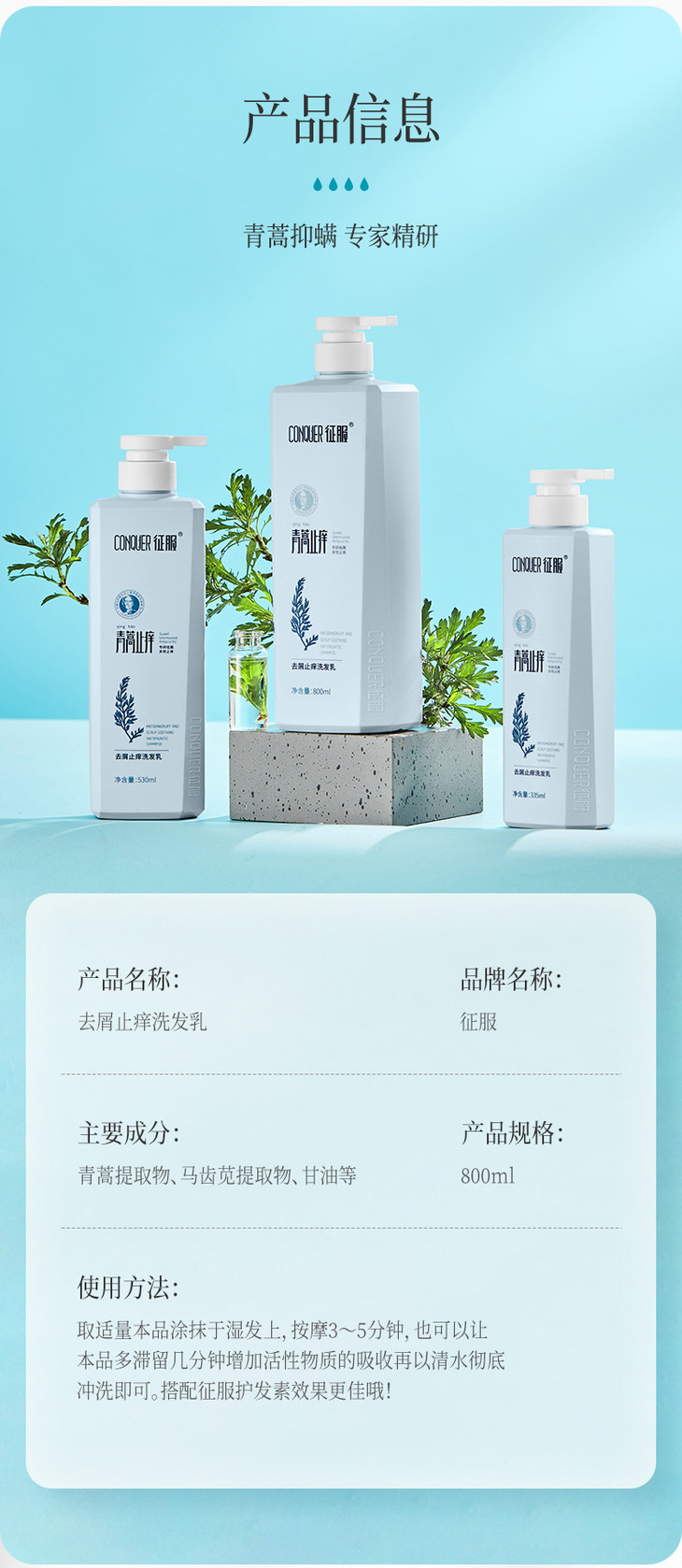 征服 新升级2代青蒿洗发乳,护发素,肤沐浴露系列(下单送小样*2)