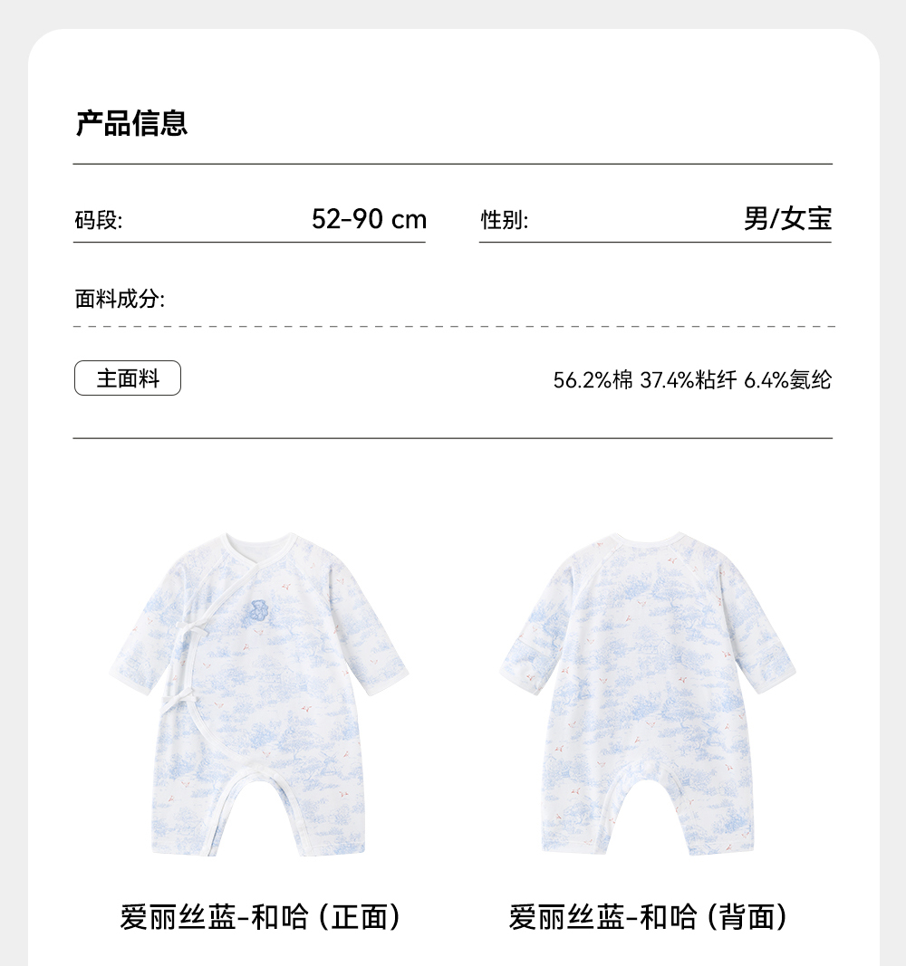 英氏婴儿衣服四季新生儿连体衣包屁衣5A抗菌宝宝衣服YLAAJ0R004A YLHAJ0R004A