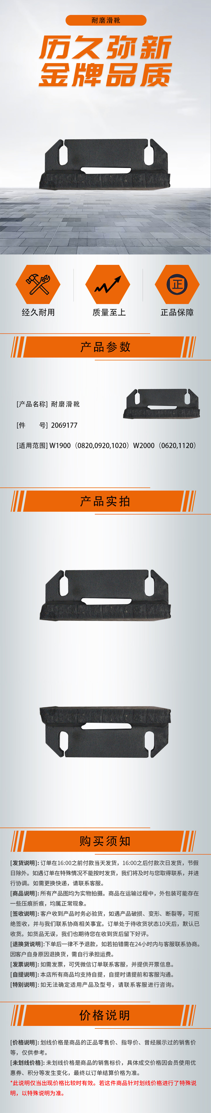 【耐磨滑靴2069177】适用于W1900(0820,0920,1020)W2000(0620,1120)