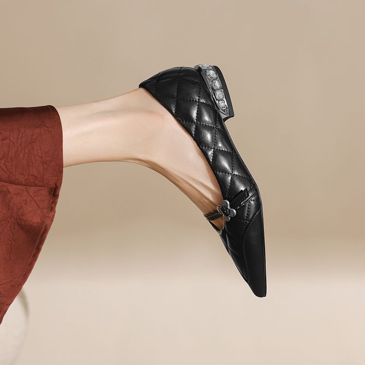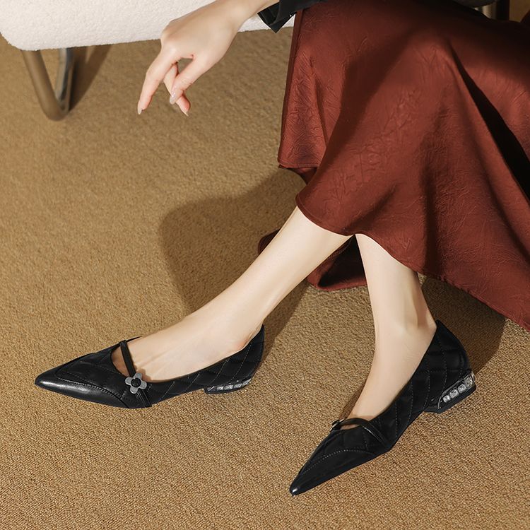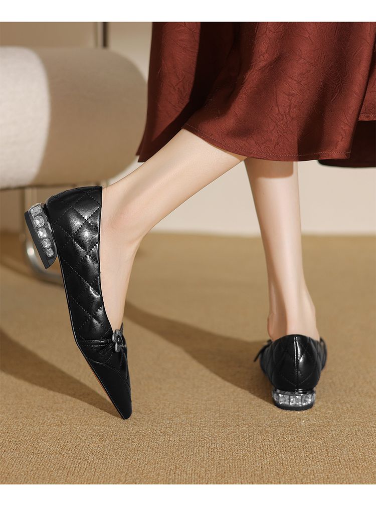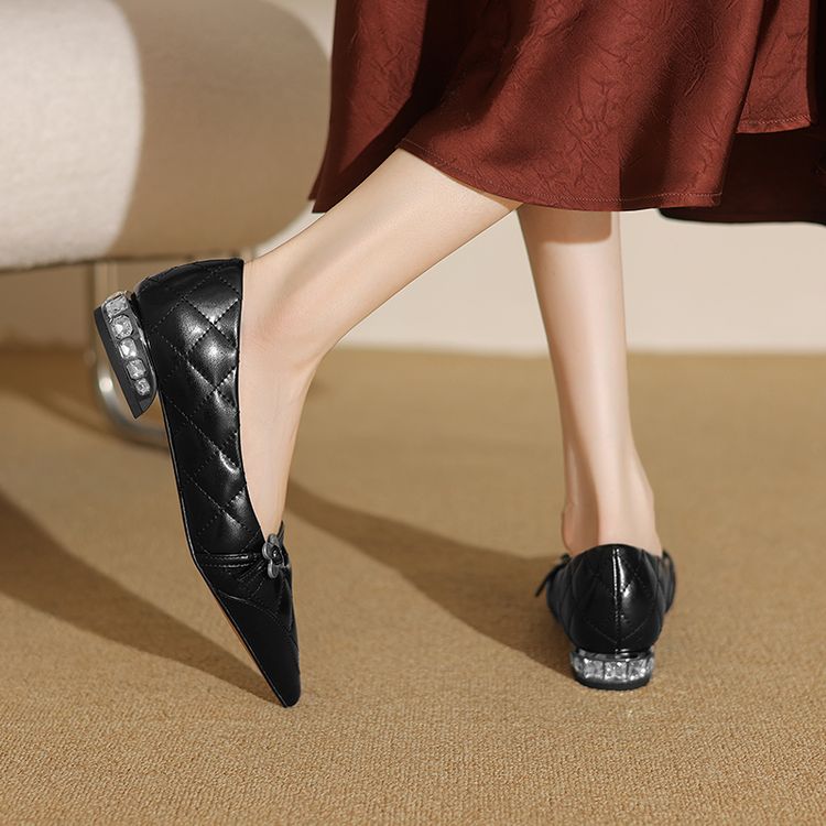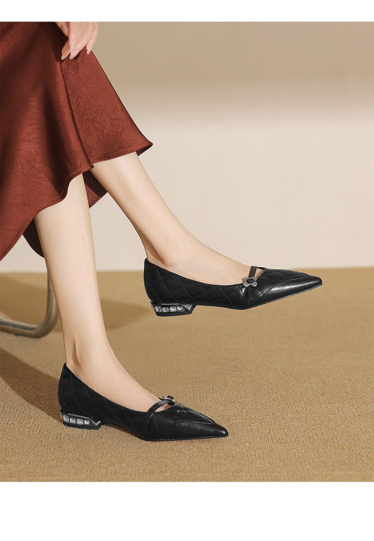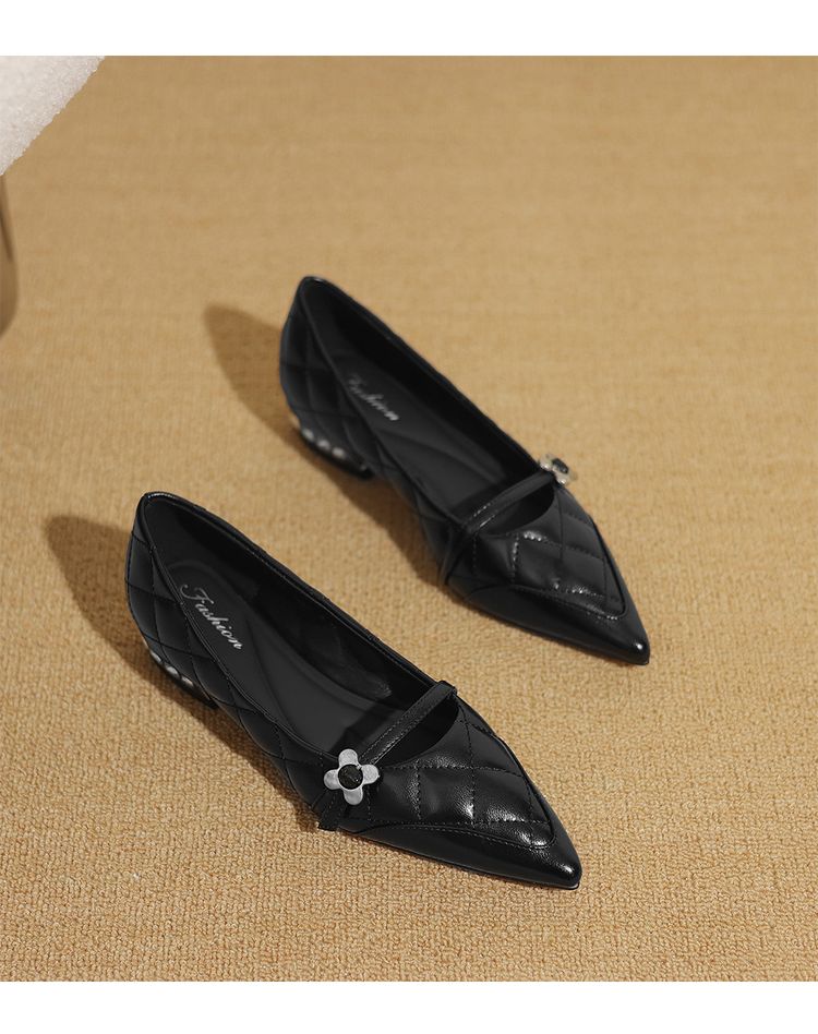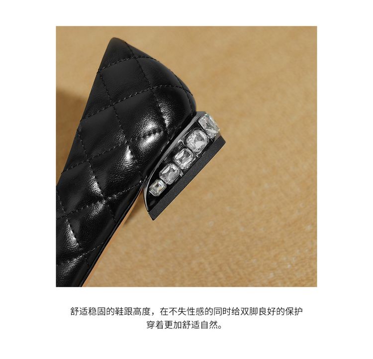 【预售5天】垫脚Q弹~春季新品质感水钻跟超软羊皮菱格一字带浅口单鞋YS&3833