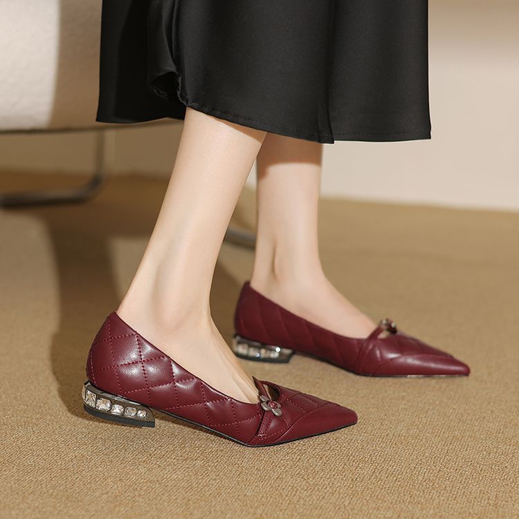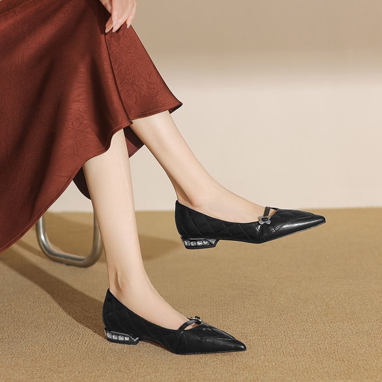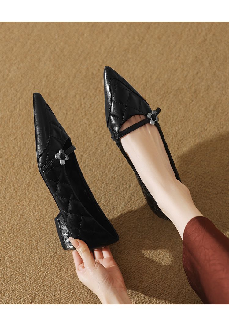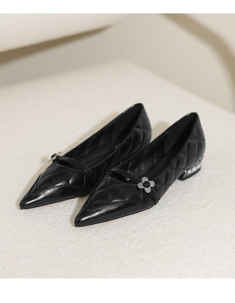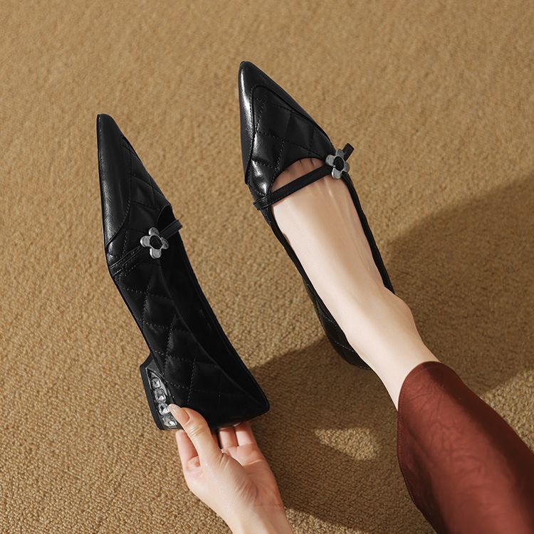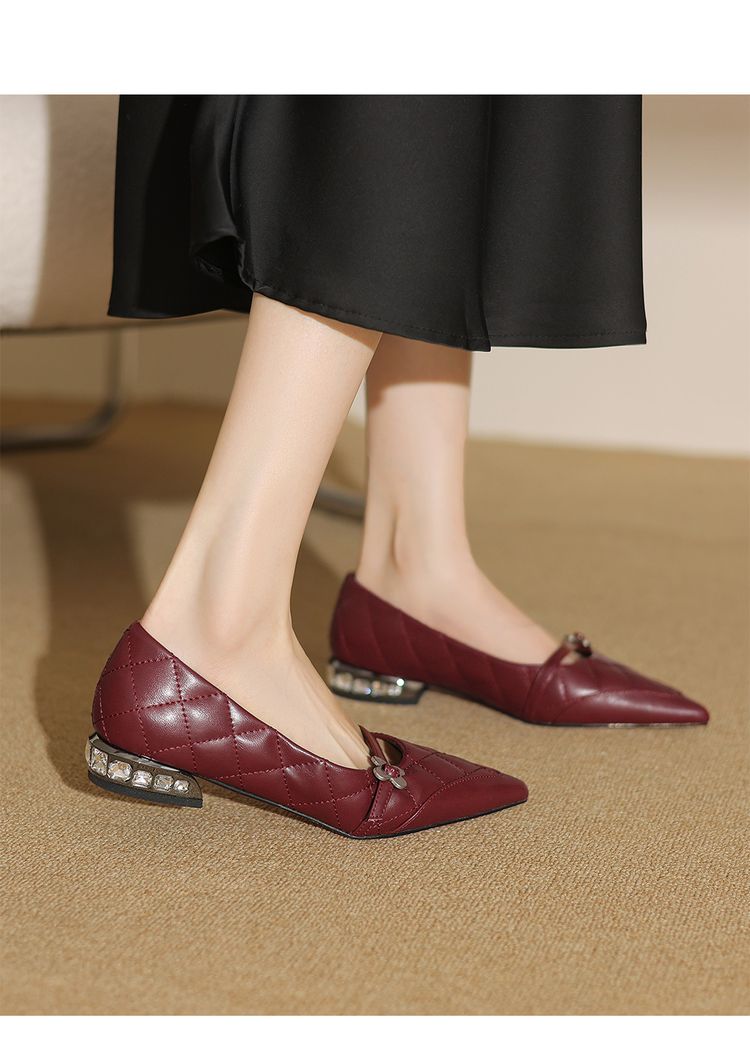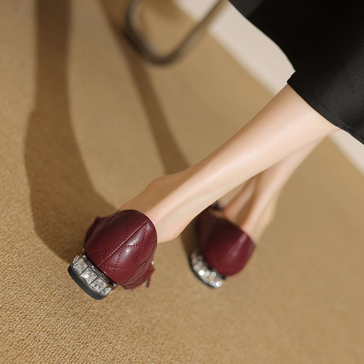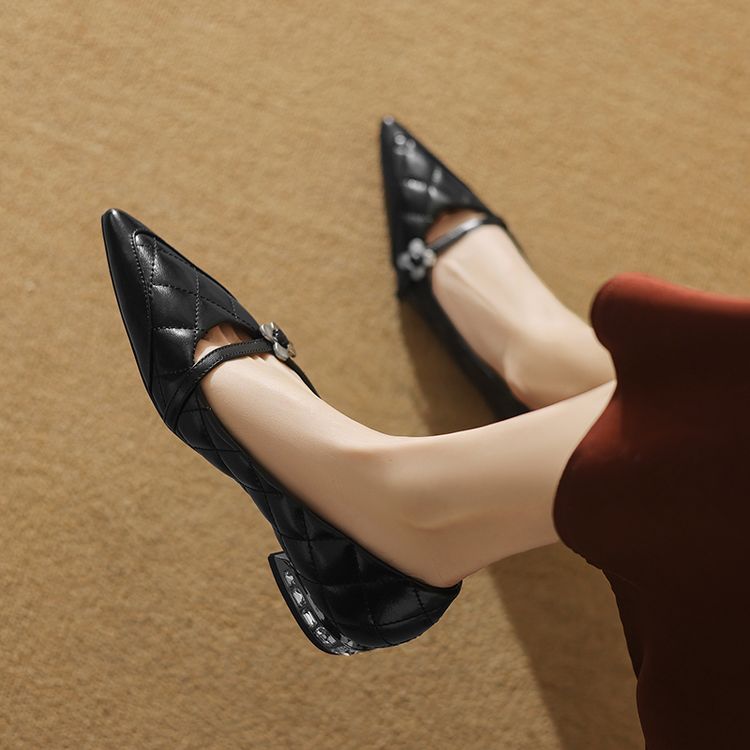 【预售5天】垫脚Q弹~春季新品质感水钻跟超软羊皮菱格一字带浅口单鞋YS&3833