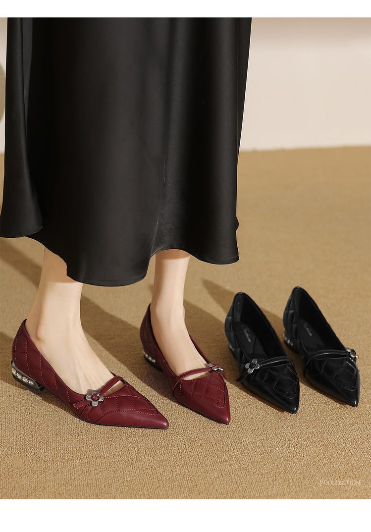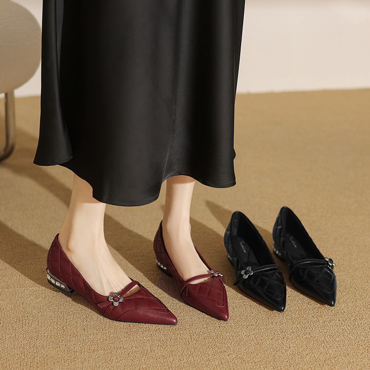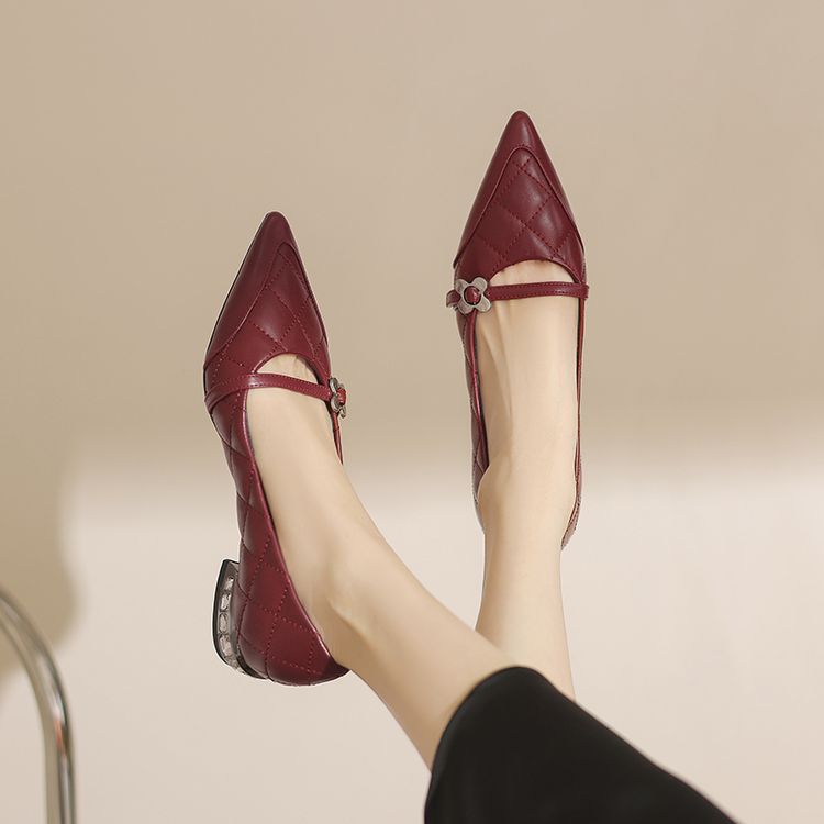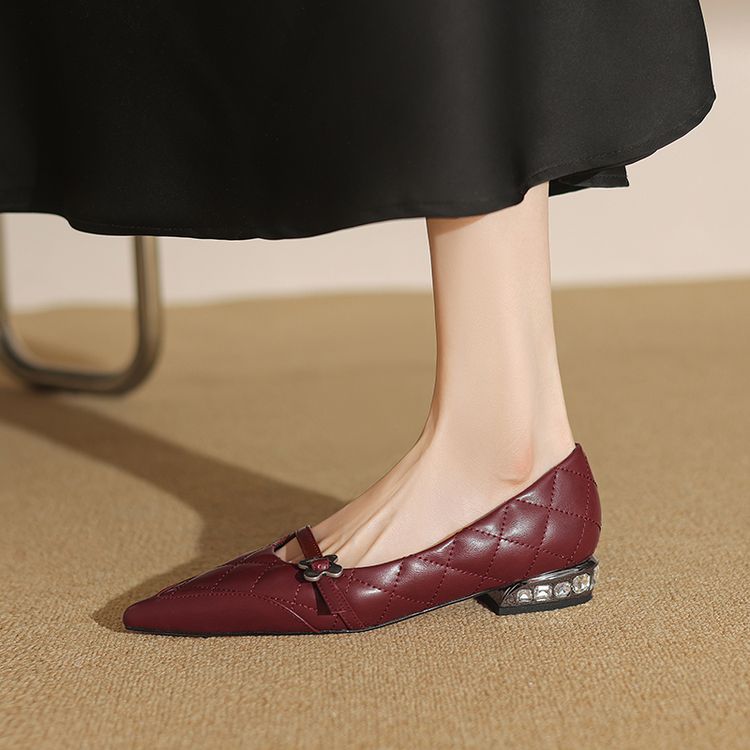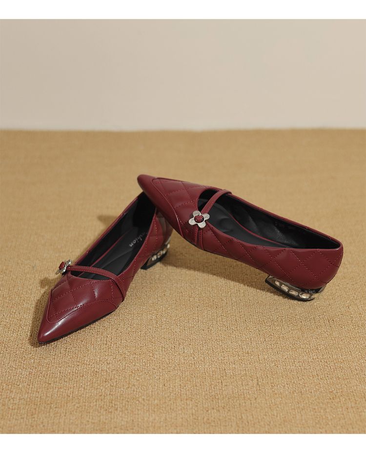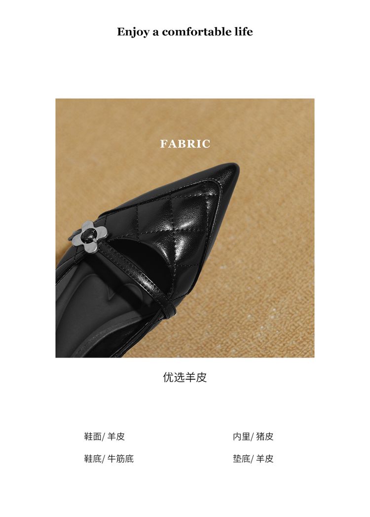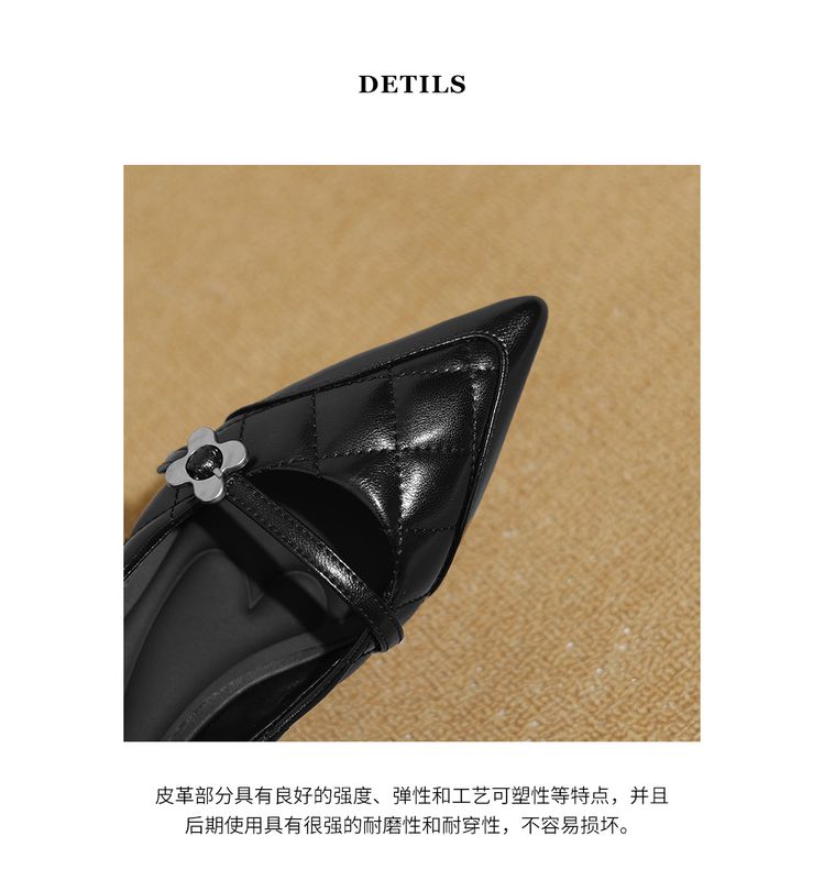 【预售5天】垫脚Q弹~春季新品质感水钻跟超软羊皮菱格一字带浅口单鞋YS&3833