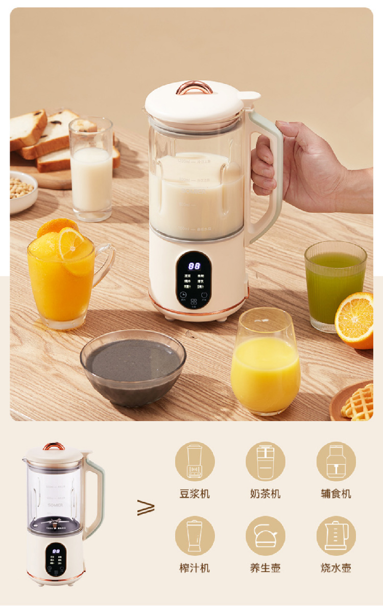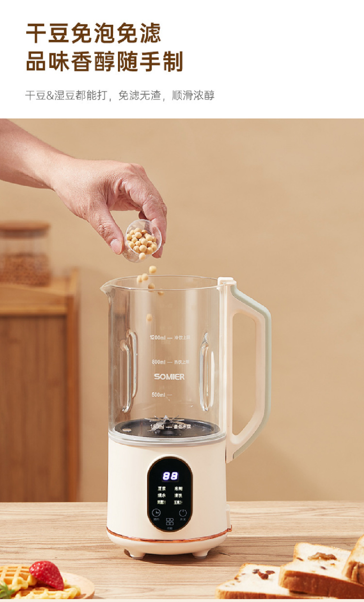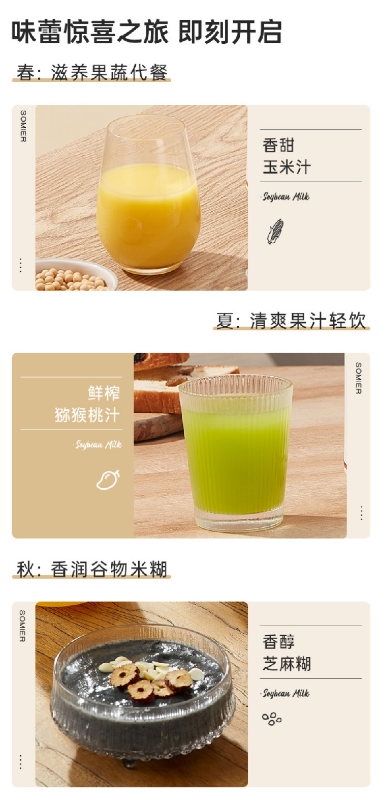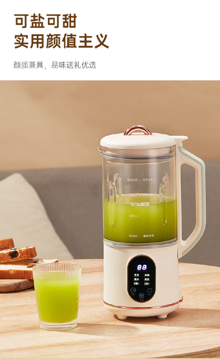【全自动加热豆浆机】somier多功能免过滤自动预约豆浆机 小型家用破壁搅拌料理辅食机