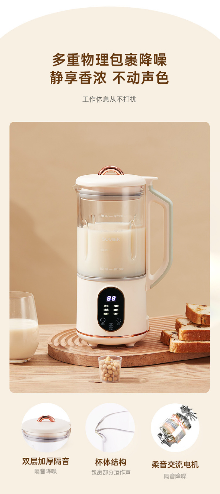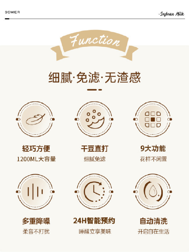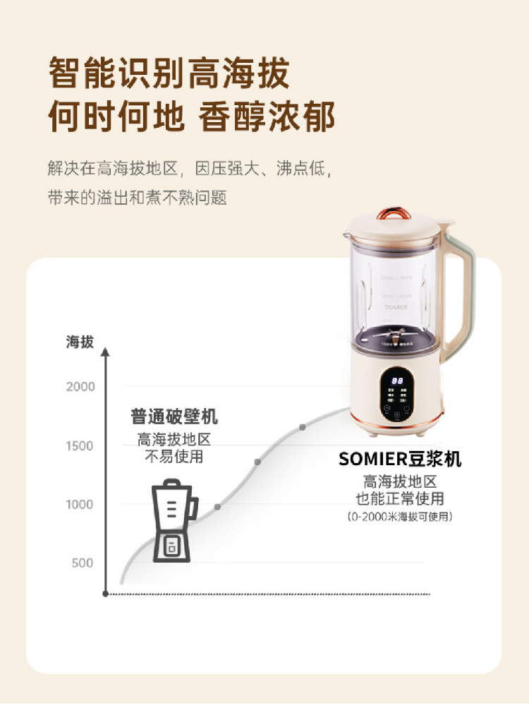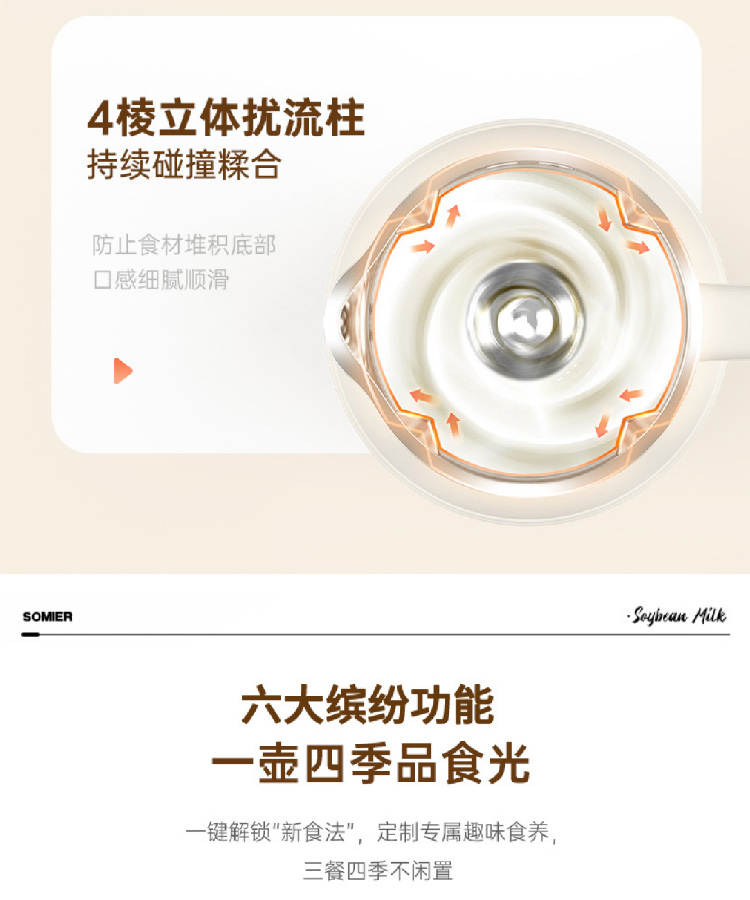 【全自动加热豆浆机】somier多功能免过滤自动预约豆浆机 小型家用破壁搅拌料理辅食机