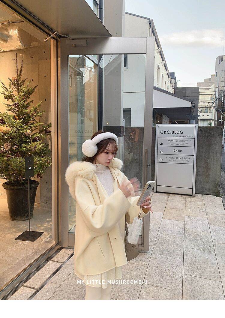 金蘑菇菇 mignon又见海瑟薇/娇俏弧度 定染10羊绒 小个子大衣