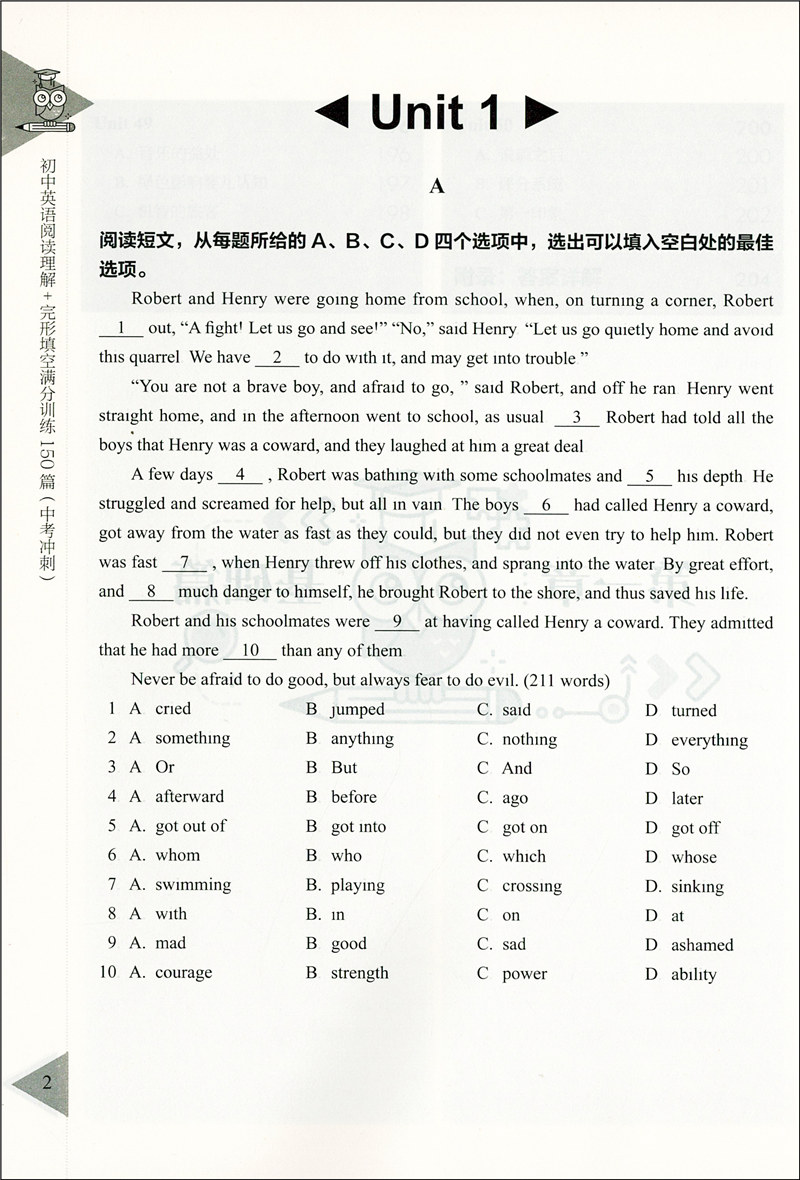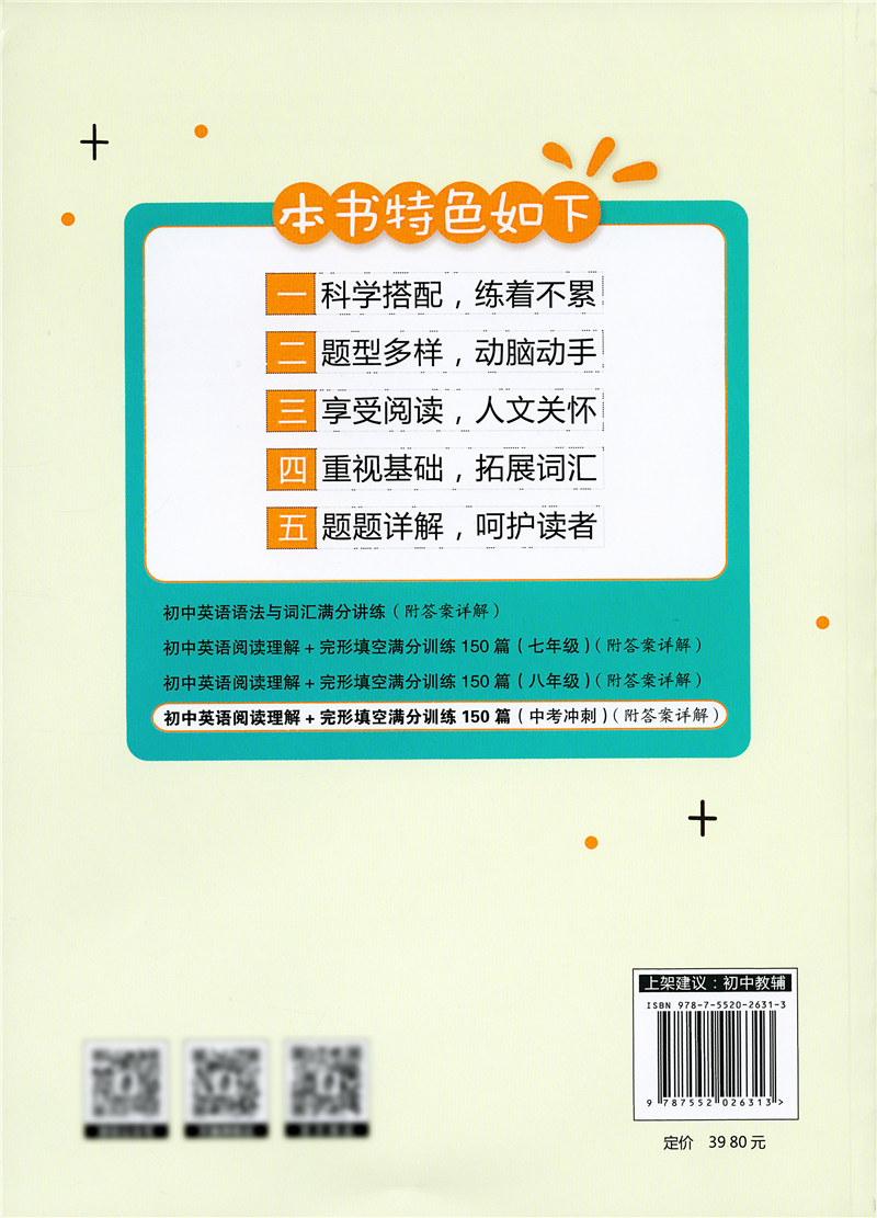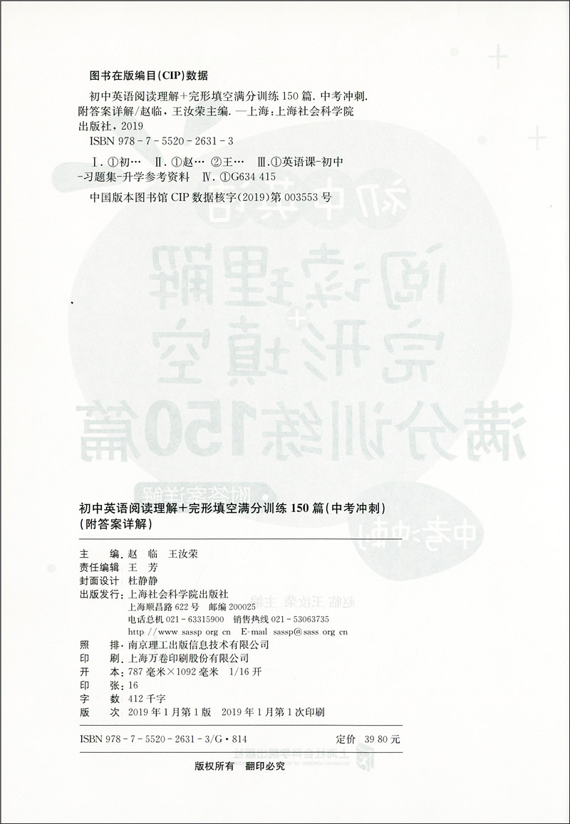 初中英语阅读理解+完形填空 满分训练150篇 中考冲刺 含详解答案 九年级/9年级 初中英语阅读与完型 上海社会科学院出版社