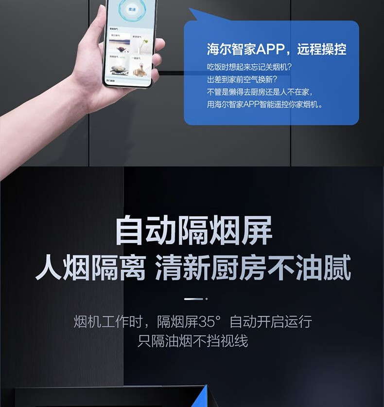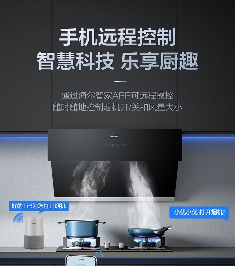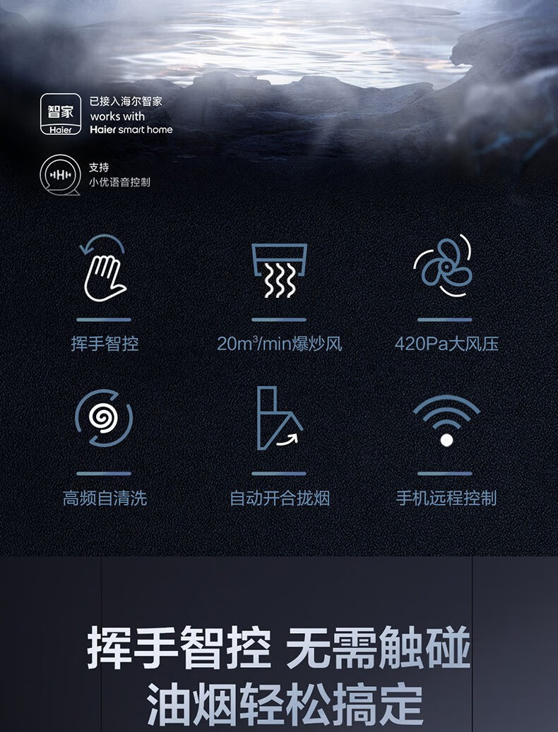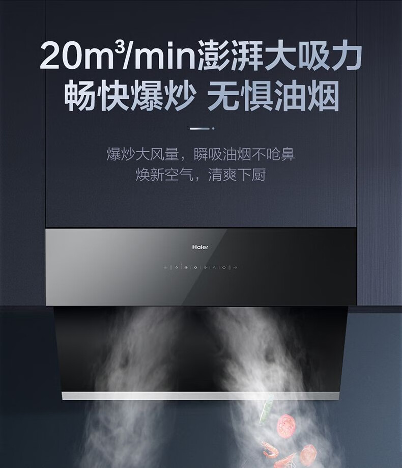 海尔油烟机家用侧吸式爆炒大吸力一级能效触控 21立方海尔油烟机 CXW-219-EC903