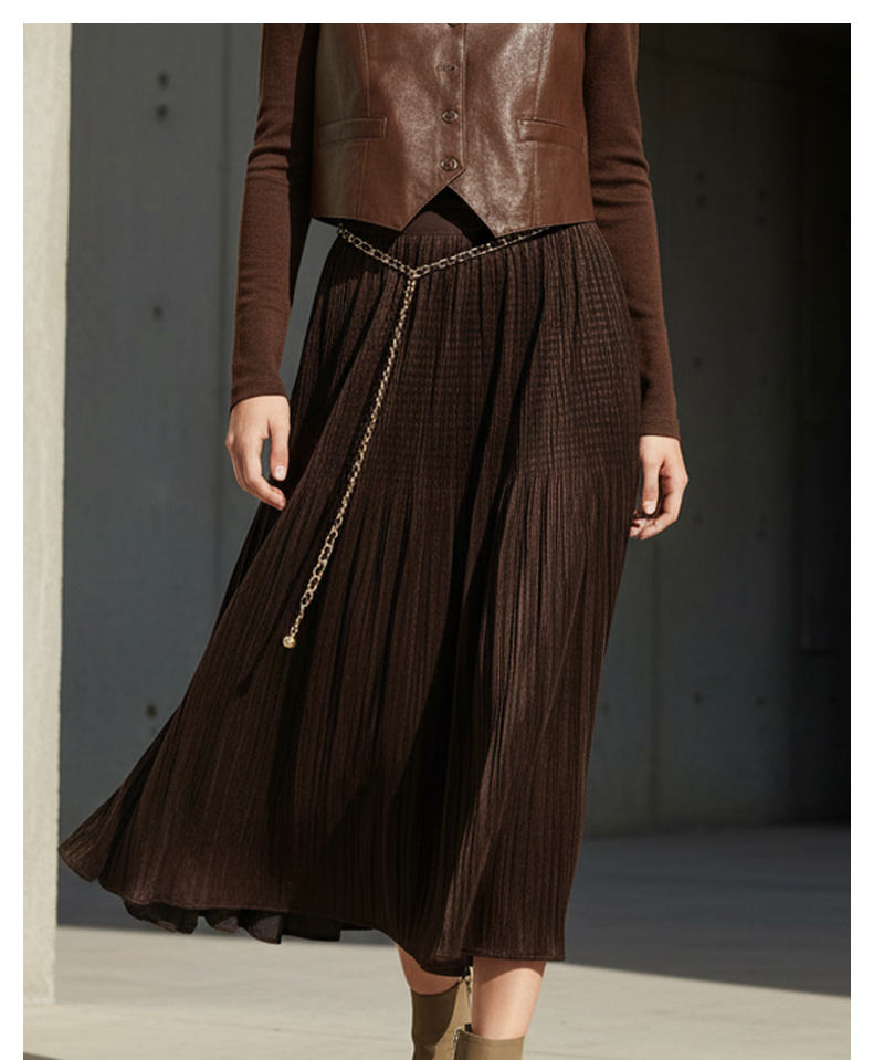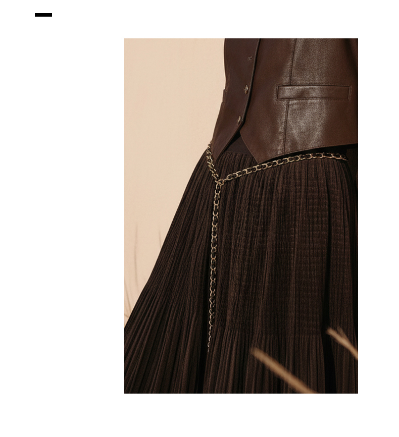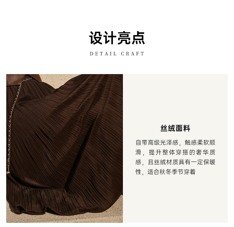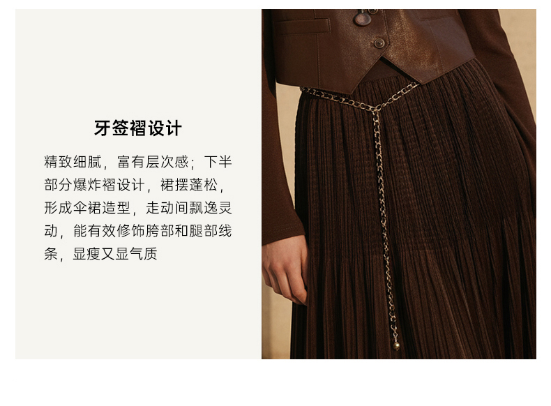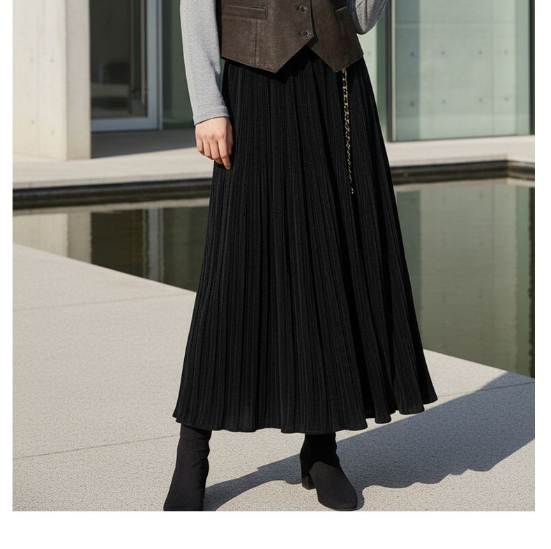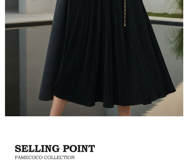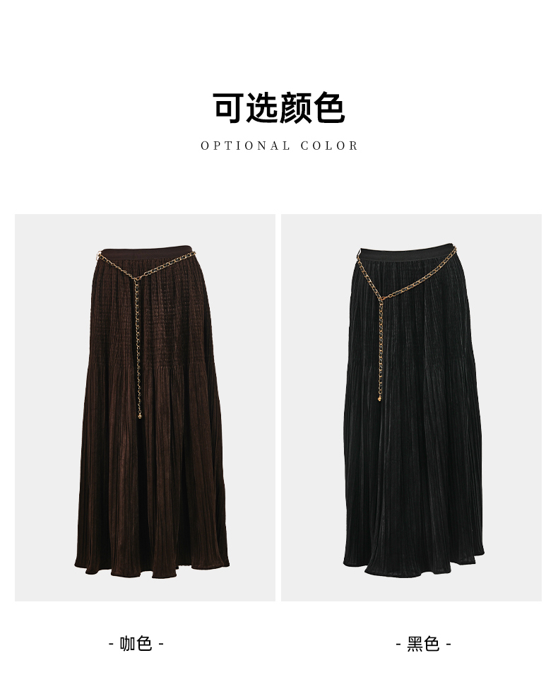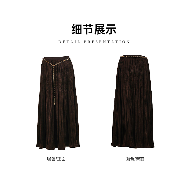 Famecoco范可儿高级复古纯色百褶裙优雅百搭长款半身裙FAD8HA112