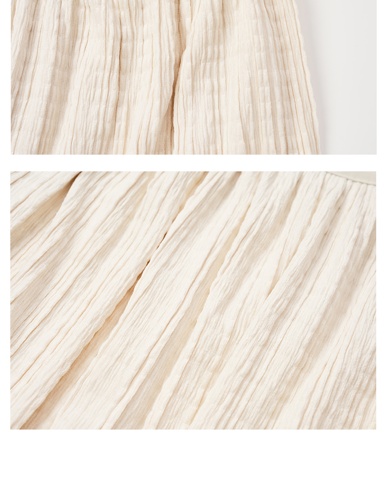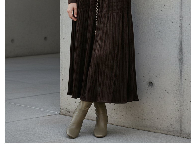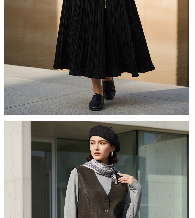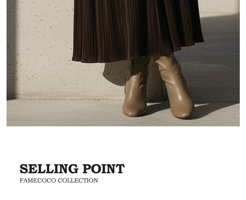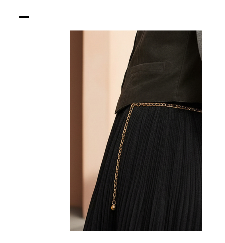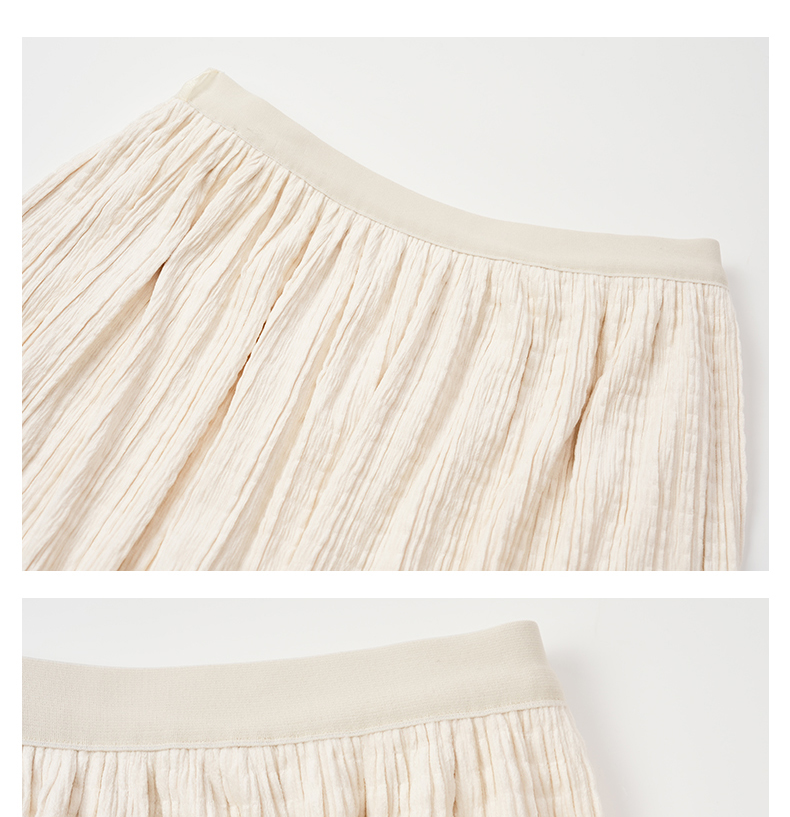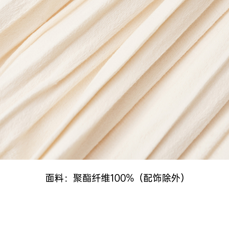 Famecoco范可儿高级复古纯色百褶裙优雅百搭长款半身裙FAD8HA112