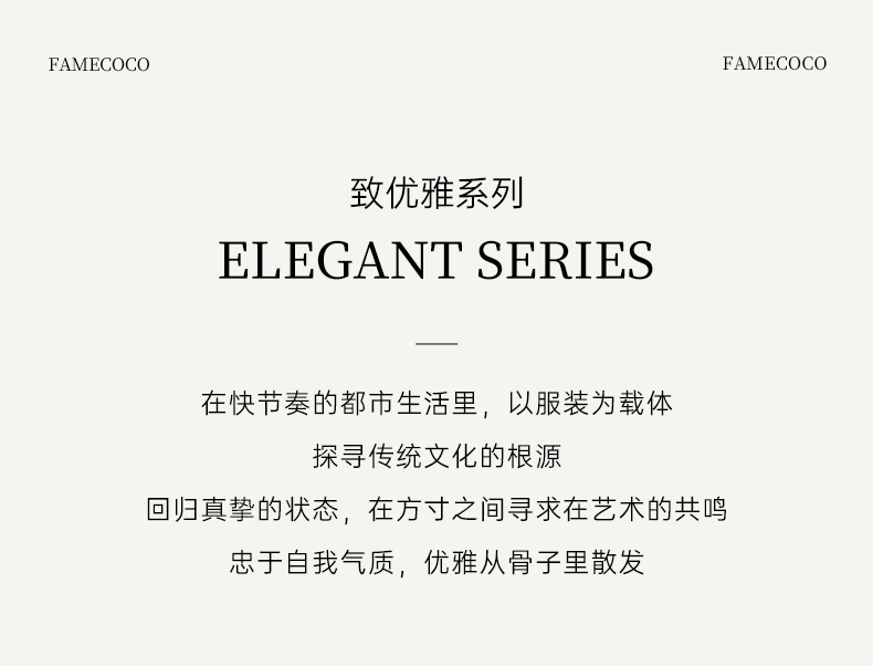 - Famecoco作为中国本土设计师品牌之一的她,创建于美丽的时尚花都广州,自2013年创立以来,一直致力于打造优雅、知性、文艺的穿着理念。